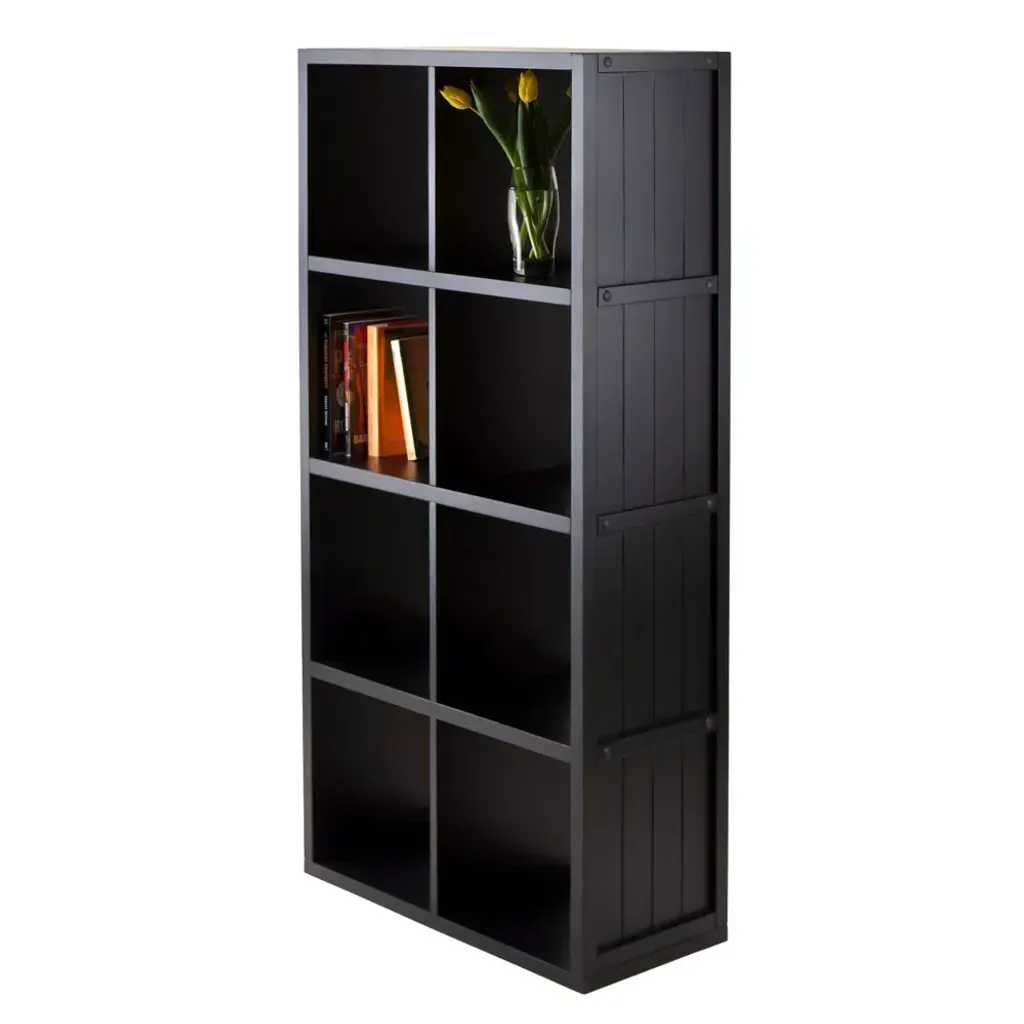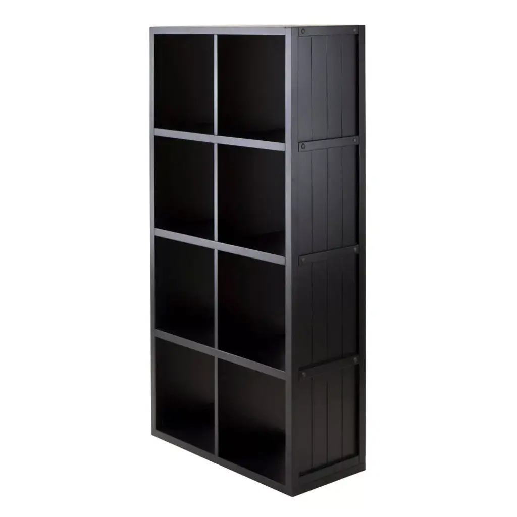 Combine storage with elegant interior design when you add this Timothy Nine-Piece Storage Shelf Set from Winsome to your home. This storage shelf set features a black four-by-two eight-compartment storage shelf, plus six chocolate-brown fabric baskets - perfect for arranging anything from boots to books. The black hardwood design accents your space with elegant color; the fabric baskets help you stay organized, and can easily be tucked away for space-saving convenience. Fill this storage shelf with miscellaneous supplies and decorate the top with anything from plants to pottery to bring functional flair to your interior decor.