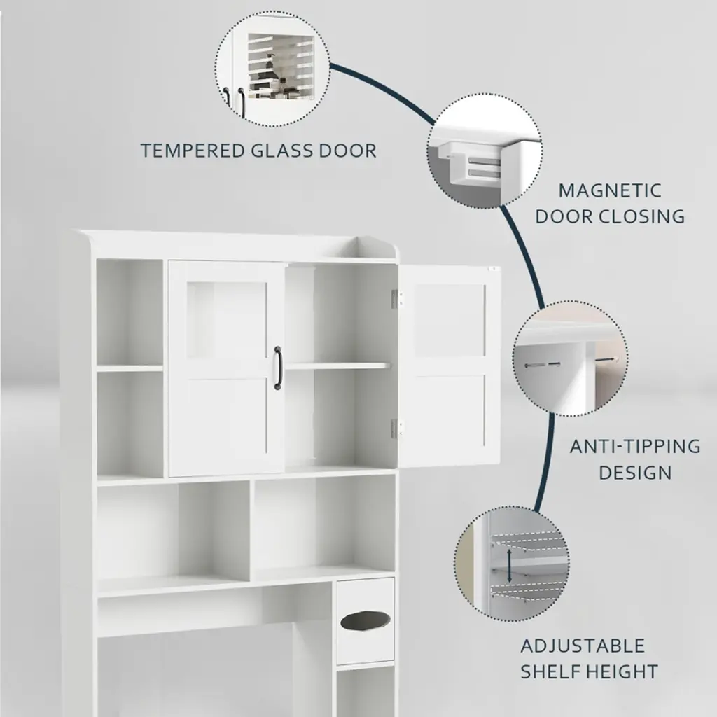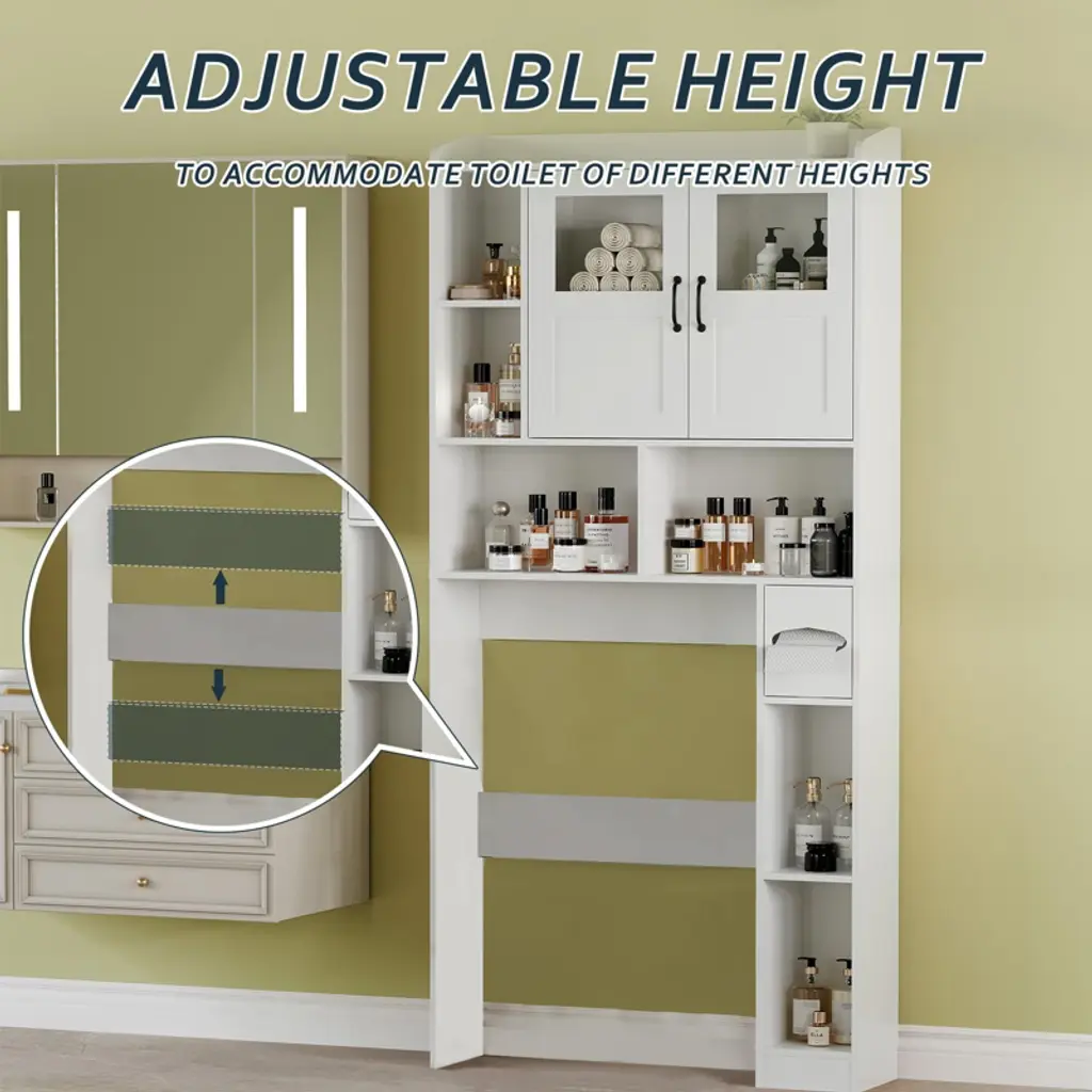 67.4" Height Farmhouse Bathroom Organizer, Over The Toilet Storage Cabinet With Adjustable Shelf & Glass Door, For Bathroom, Laundry Room, Restroom