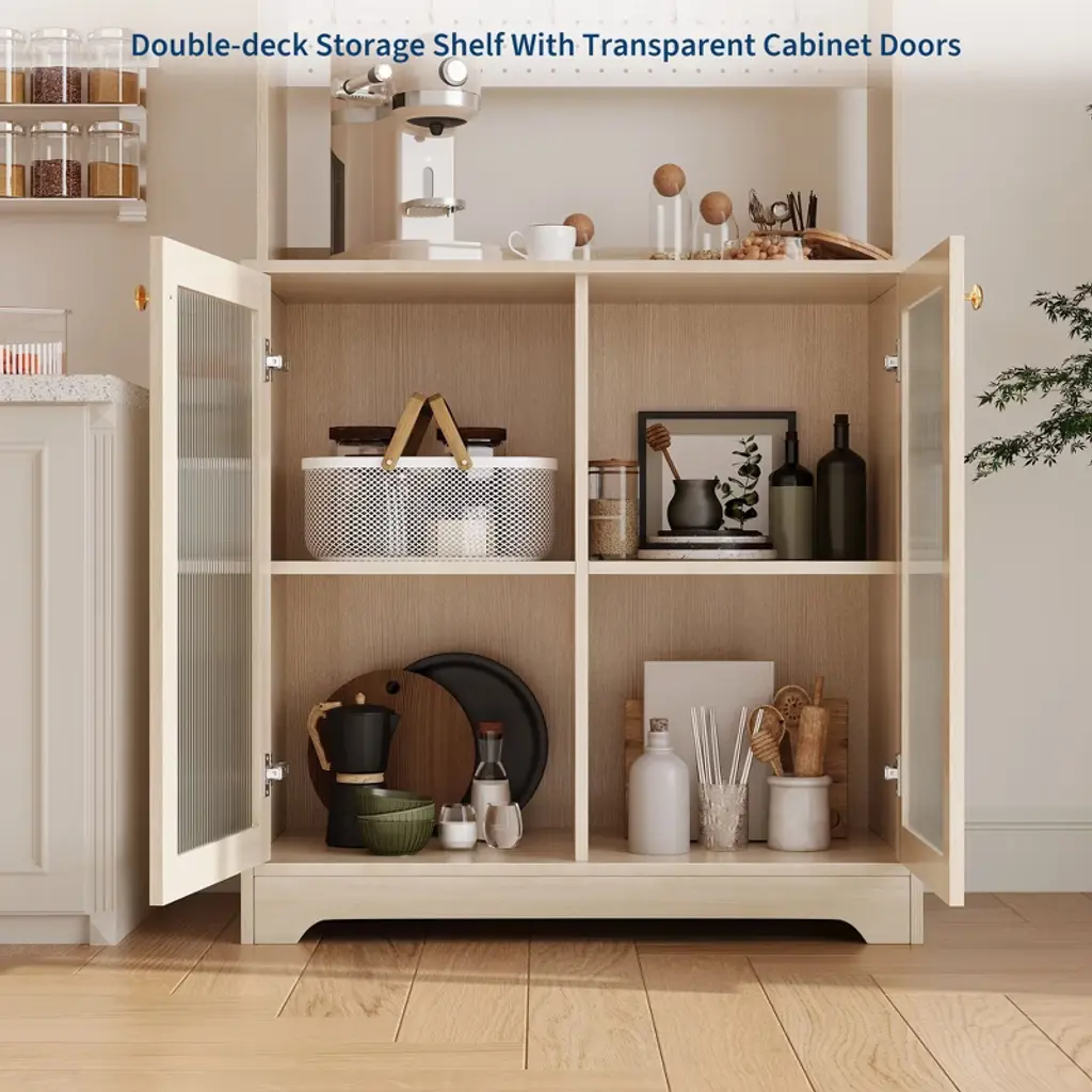 71" Kitchen Pantry Cabinet, Wooden Tall Sideboard Buffet Cabinet With Microwave Stand, Pegboard And Hutch, For Dining Room, Living Room