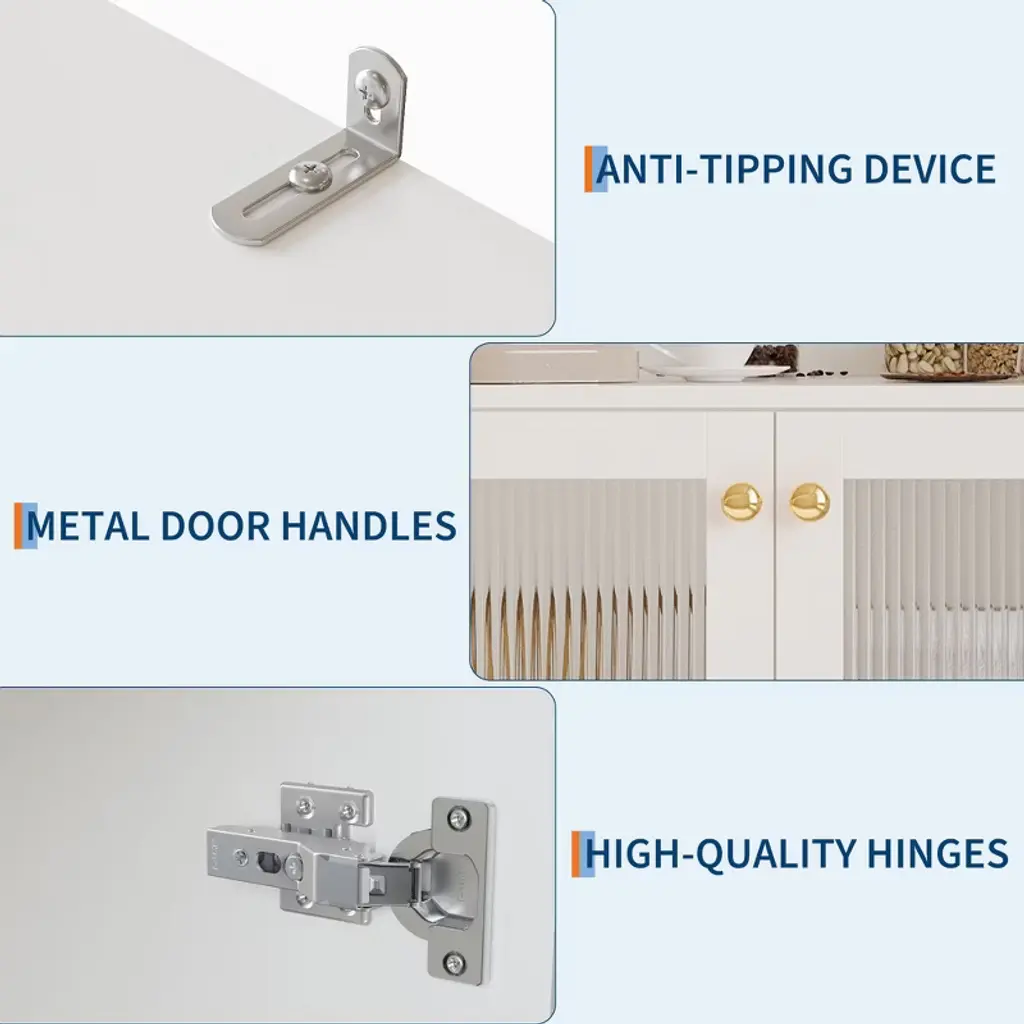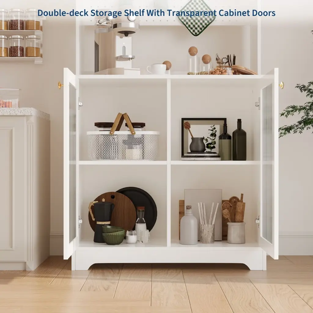 This multi-functional storage unit combines a spacious tabletop, handy pegboard, adjustable shelves, and two-door cabinet to keep your kitchen essentials perfectly organized. The customizable shelving adapts to store everything from tall bottles to small appliances, while the sturdy engineered wood construction ensures lasting durability.