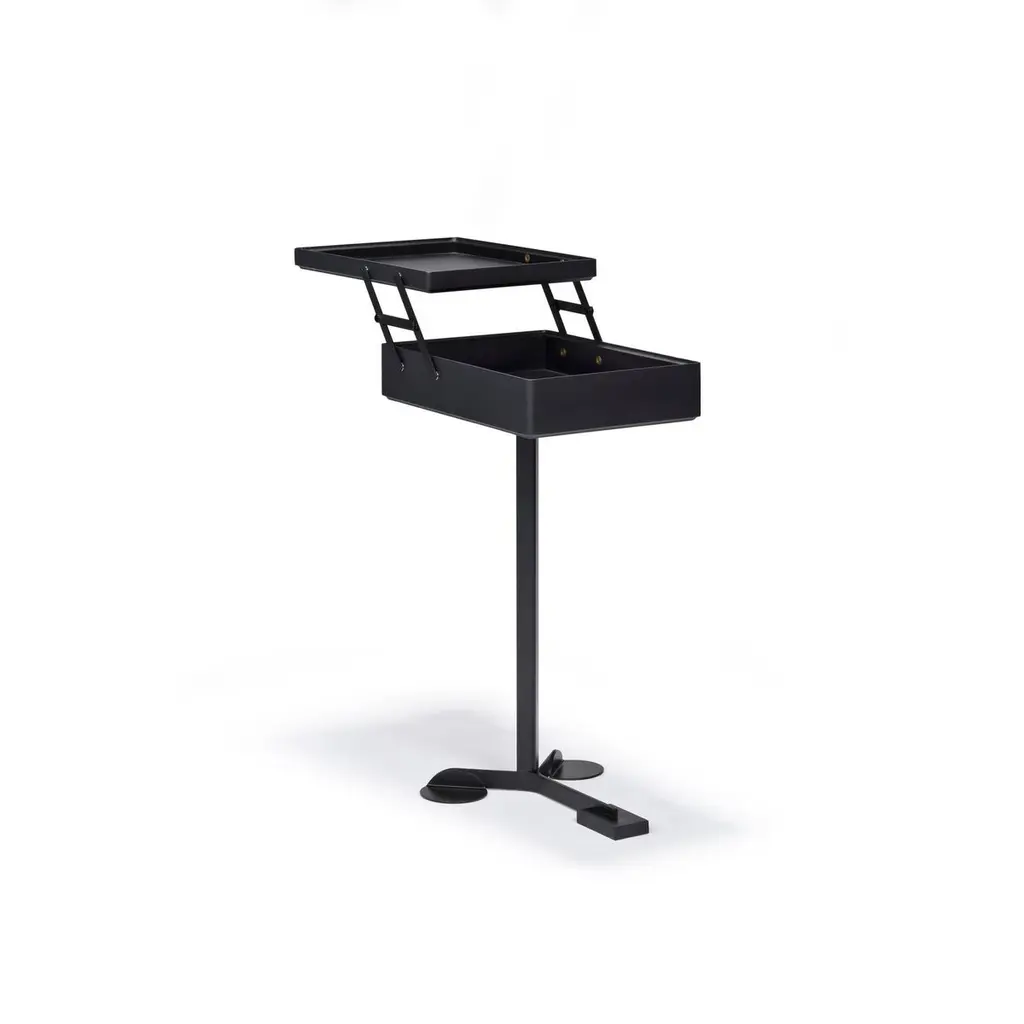 Versatile storage unit designed by Achille Castiglioni and Giancarlo Pozzi in 1988. Castiglioni is said to ponder a lot on lost space. Empty inches and square meters that could be filled with beautiful design —but for some reason just never were. Due to this thinking he did many designs intended specifically for the corners of the home.A practical corner furniture designed in collaboration with Giancarlo Pozzi in 1988—intended to take advantage of the available space in your corners. A true multipurpose unit set made in wood with three triangular shelves.Important information regarding images of products:Please note that some of the images show other colors and variations of the model, these images are only to present interior design proposals. The item that is selling is on the first image. Important information regarding color(s) of products:Actual colors may vary. This is due to the fact that every computer monitor, laptop, tablet and phone screen has a different capability to display colors and that everyone sees these colors differently. We try to edit our photos to show all of our products as life-like as possible, but please understand the actual color may vary slightly from your monitorAbout the designer:Renowned Italian designer Achille Castiglioni (1918-2002) had a passion for re-designing, re-inventing and re-conceptualizing. Traditional interior design objects would pass through his Milan-based studio and end up perfected. He always aimed at enhancing and glorifying the value of the design. Throughout his career he worked to raise design to an ever-higher level of synthesis - stripping design down to the very core and eliminating everything superfluous. During his career Achille Castiglioni collaborated with many designers, among them Giancarlo Pozzi. Together they made Trio and Comodo in 1991.About the manufacturer:Karakter is a Danish design company founded on a spirit of exploration, courage and an uncompromising attitude to quality. Rooted in the Scandinavian design tradition with an international outlook, Karakter presents a portfolio of furniture, lighting and objects that is relevant, honest, expressive and sometimes playful. Aspiring to build an enduring legacy, they work with contemporary designers such as Aldo Bakker and PlueerSmitt and present works by the masters Bodil Kjær, Achille and Pier Giacomo Castiglioni, Paul McCobb, Joe Colombo and Angelo Mangiarotti. Each piece has a clear, undeniable expression, ensuring it pride of place in private homes and public spaces worldwide.