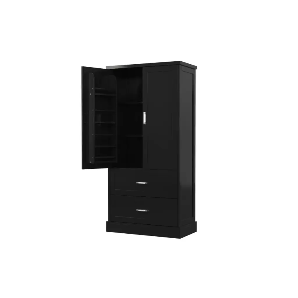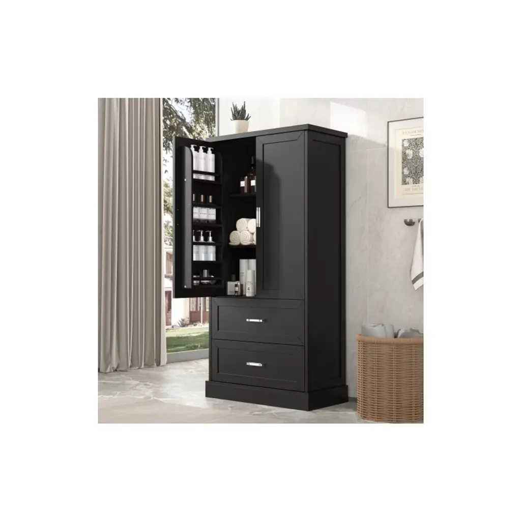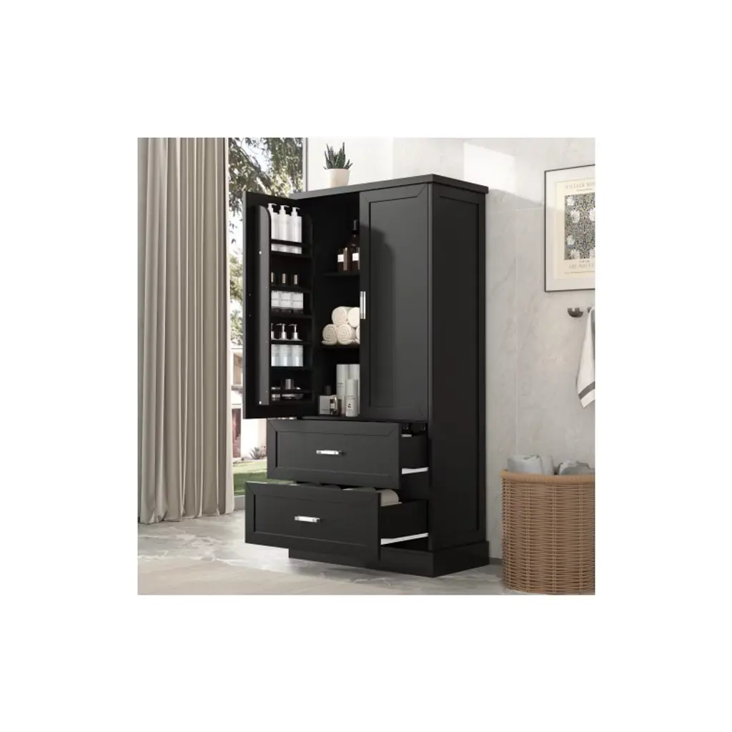 Akoasm 64 In. H Mdf Board Bathroom Storage Cabinet With Two Doors And Drawers & Adjustable Shelf-black