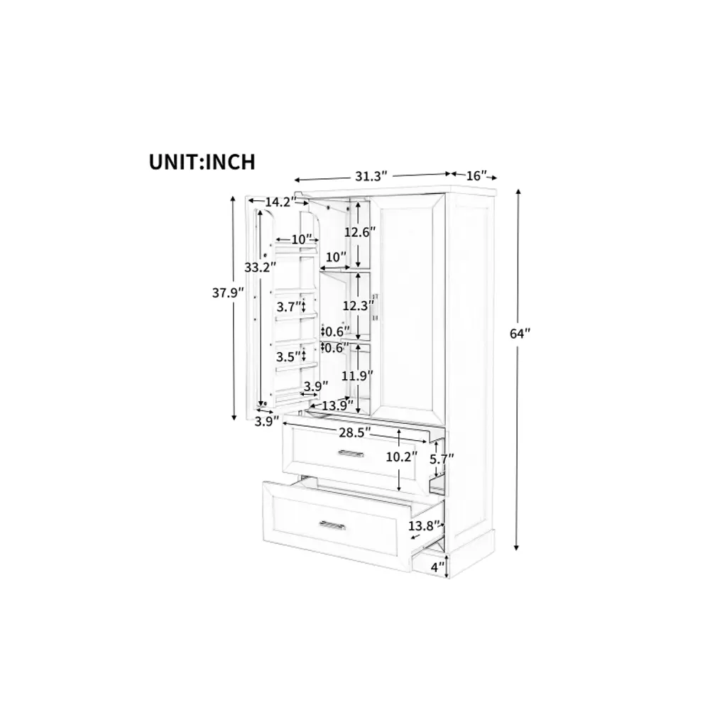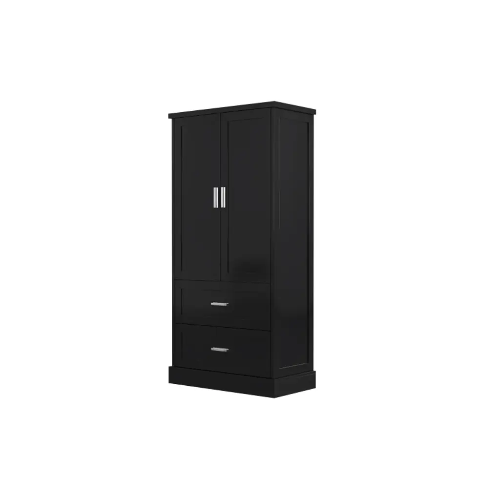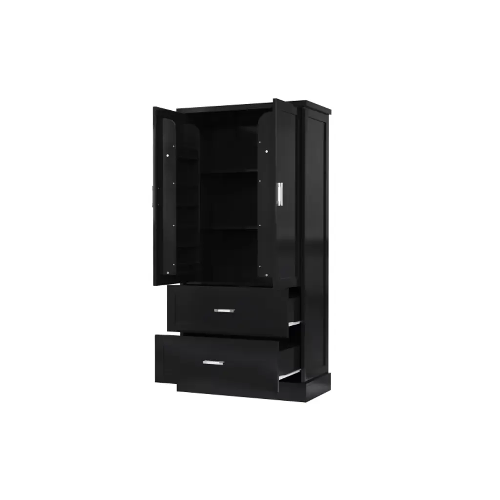 Akoasm 64 In. H Mdf Board Bathroom Storage Cabinet With Two Doors And Drawers & Adjustable Shelf-black