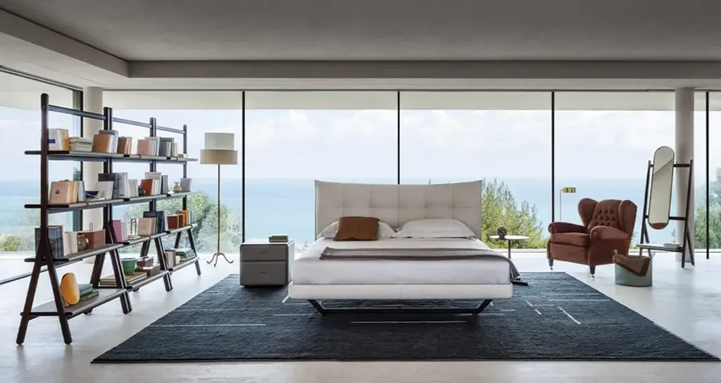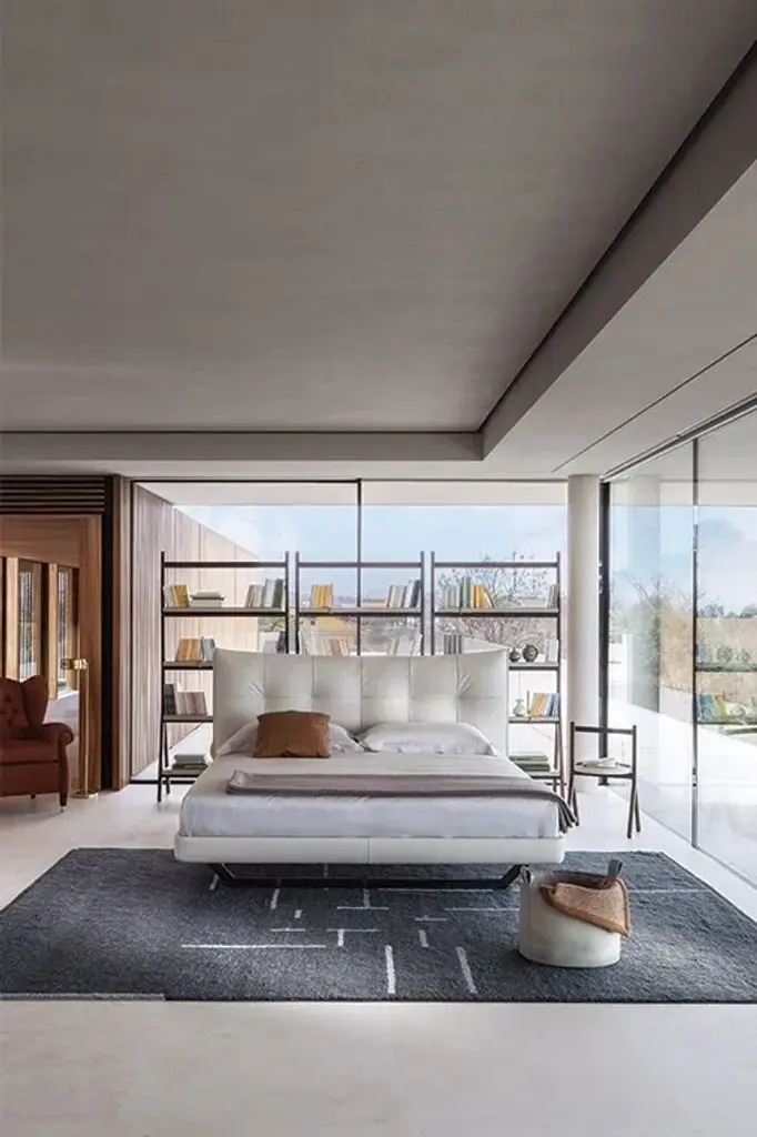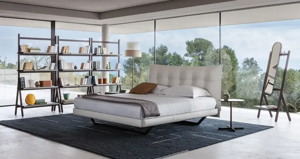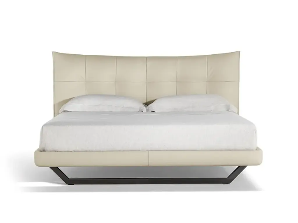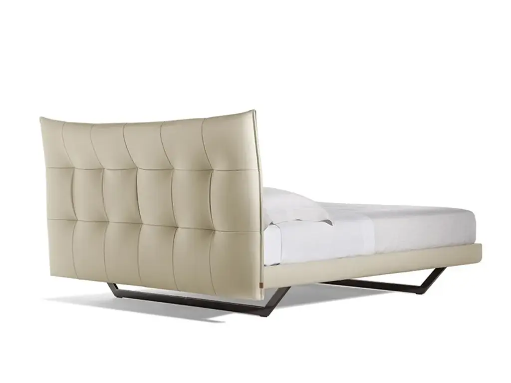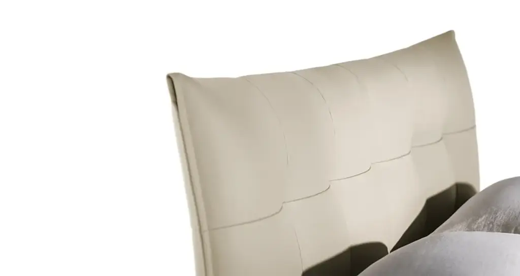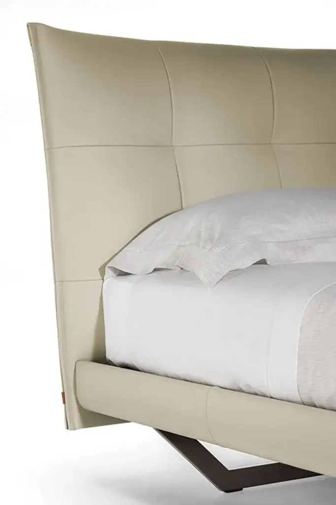 An offering for the bedroom that recalls the voluptuous lightness of the quilting that adorns a double-bed headrest. The padded headboard was born out of the faithful interpretation of a design by Tito Agnoli from 2005, who, fantastically ahead of his time, expresses the aesthetic of softness that is increasingly required in padded furnishings for contemporary living.Aurora Tre has an enveloping shape that is formed by the curvature of the structure, whose parts are made in birch plywood. Its softness comes from the internal padding with polyurethane foam of different densities and polyester wadding onto which Poltrona Frau's extraordinary artisans fix the upholstery with a sequence of stitches pulled one by one. It is available in Pelle Frau® leather or in the range of Poltrona Frau fabrics. The support feet are metal, available in the iconic trapezoidal shape in two different finishes, or in cylindrical-shaped black lacquered metal.AURORA TRE WITH STORAGE UNITThe perfect answer to the padded headboard, Aurora Tre was born out of the faithful interpretation of a design by Tito Agnoli from 2005 that recalls the voluptuous lightness of the quilting that adorns a double-bed headboard. It is an offering for the bedroom that, fantastically ahead of its time, expresses the aesthetic of softness that is increasingly required in the padded furnishings for contemporary living.Aurora Tre has an enveloping shape that is formed by the curvature of the structure, whose parts are made in birch plywood. Its softness comes from the internal padding with polyurethane foam of different densities and polyester wadding onto which Poltrona Frau's extraordinary artisans fix the upholstery with a sequence of stitches pulled one by one.The bed can accommodate a large storage space, made accessible thanks to a device with gas springs and a single or double lifting mechanism. In the case of a single mechanism, the bed base is raised to an inclined position. Both mechanisms are equipped with a safety lock.Upholstery for Aurora Tre is available in Pelle Frau® leather or in the range of Poltrona Frau fabrics. The support feet are metal, available in the iconic trapezoidal shape in two different finishes, or in cylindrical-shaped black lacquered metal.Bed slats are sold separately