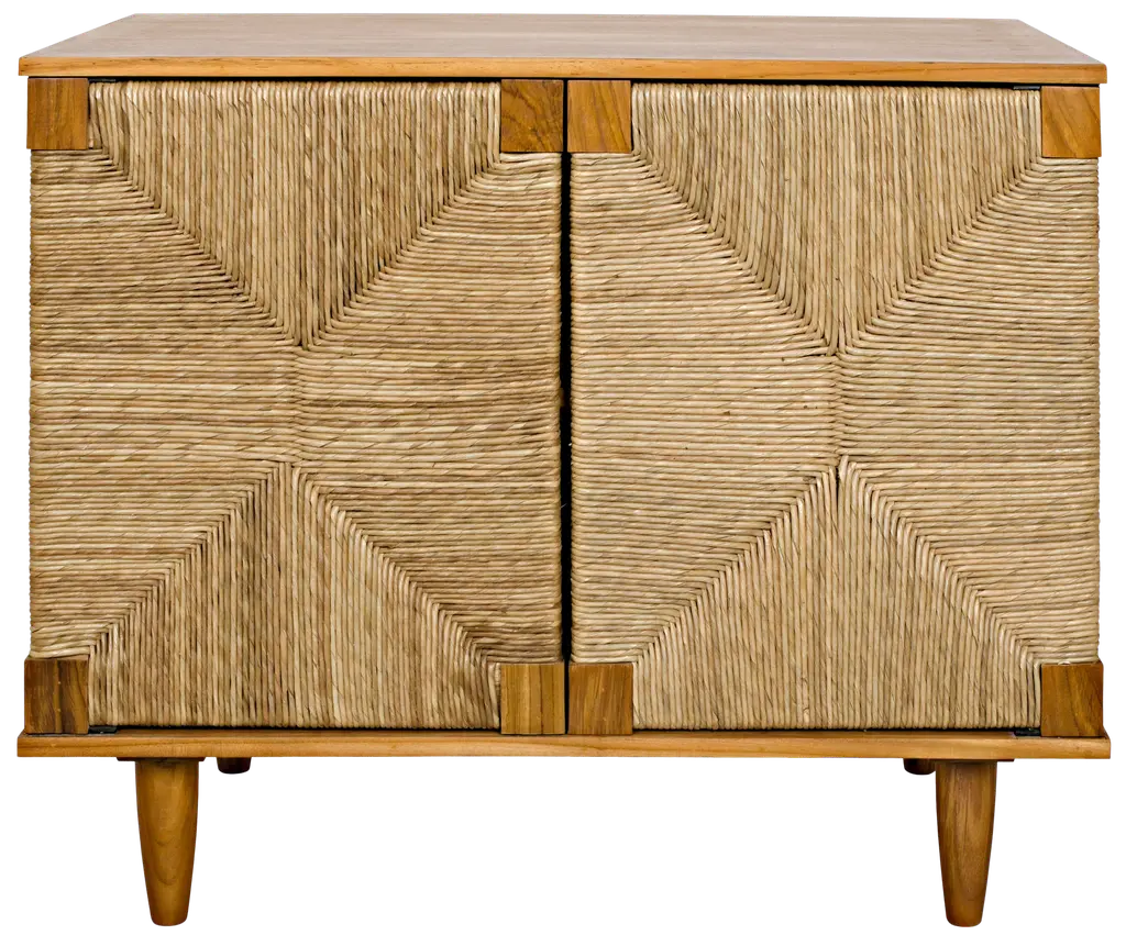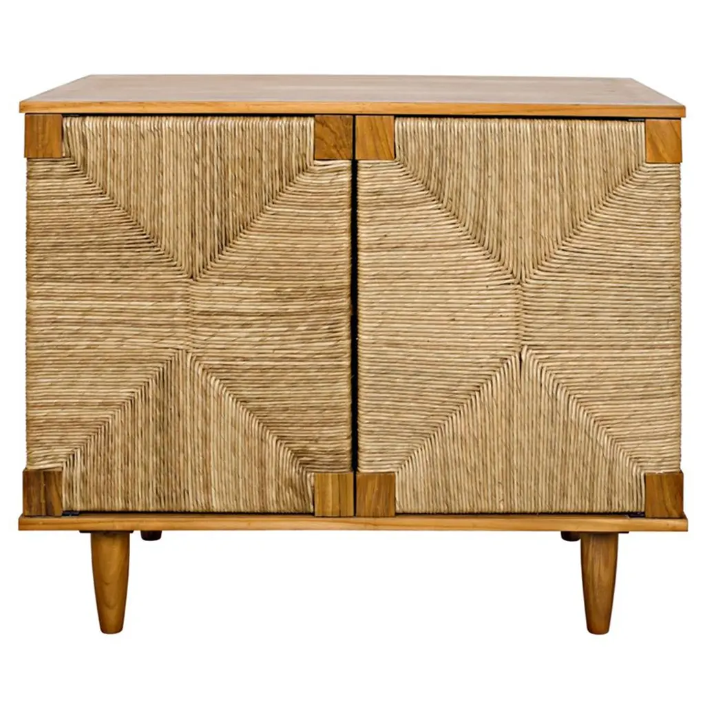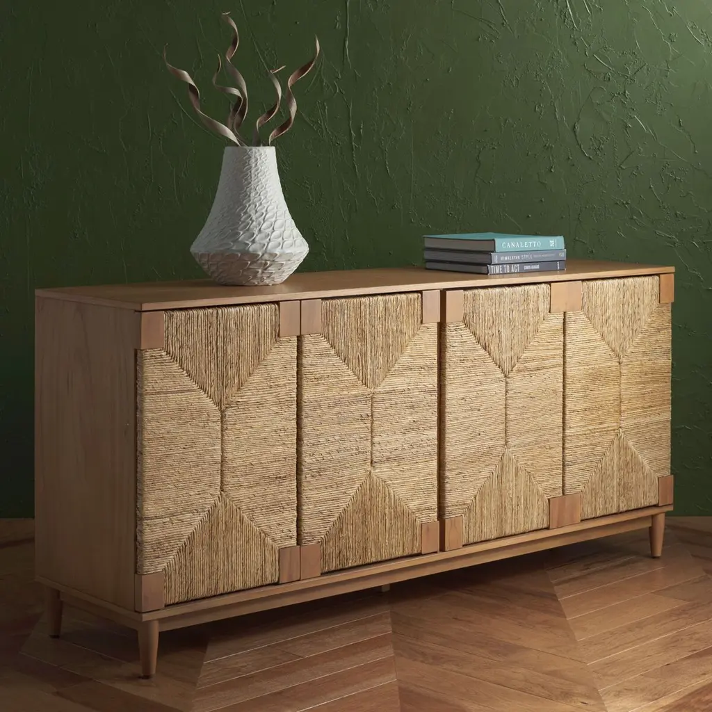 Bring any corner to life with the textural elegance and charm of our Avirayn Sideboard. Playing with contrasting finishes and textures, the sideboard brings a warm and elevated style to any room. A stunning weave from banana stems lends rich textures and eye-catching geometry to the storage unit. It is finished off with a mahogany wood frame for a charming and sophisticated appeal. Featuring four roomy cabinets, our sideboard can easily function as a buffet, office cabinet, or media unit.