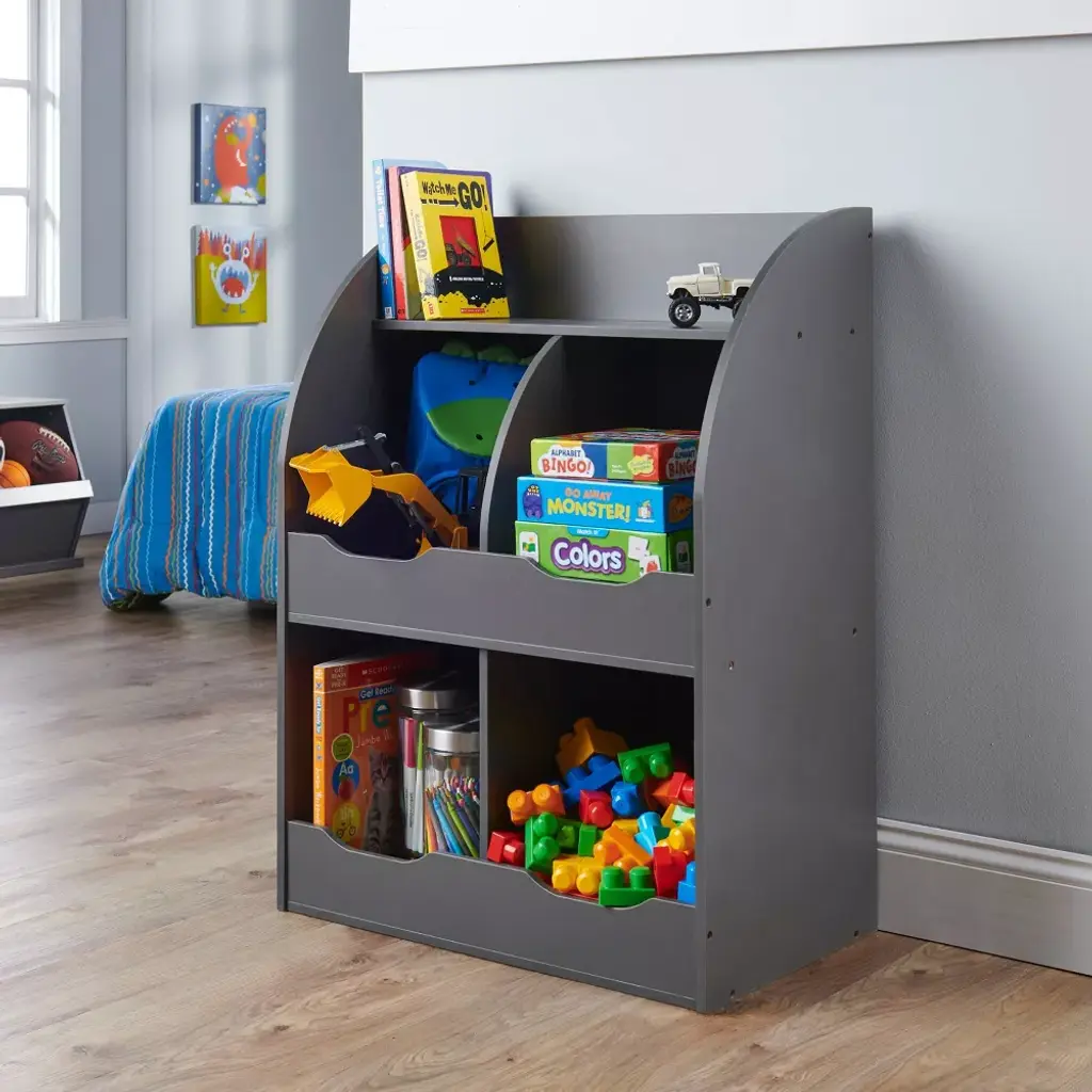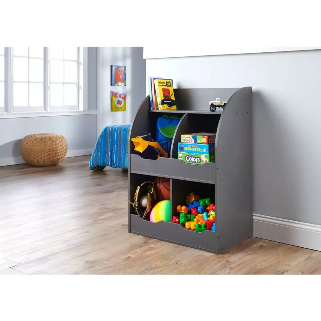 Badger Basket 4 Bin Storage Cubby With Bookshelf Charcoal: Toy Storage, Cubbies, Bookcase, Mdf, Enclosed Back, 3+ Years