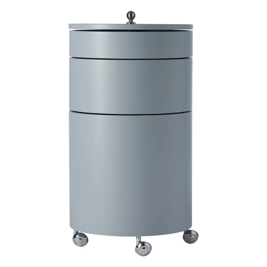 Verpan’s Barboy is a re-release of Verner Panton’s versatile bar trolley and mobile storage unit from 1963. Made of molded wood, Barboy consists of four cylindrical elements, two of which swing out to the sides. When in bar use, you can place glasses and snacks on the top levels, and fill the lowest element with bottles and carafes. Besides a serving trolley, Barboy also makes an excellent nightstand, side table or convenient storage trolley for example in the hallway or office. Thanks to the chrome-plated castors, Barboy is easy to move from one room to another.