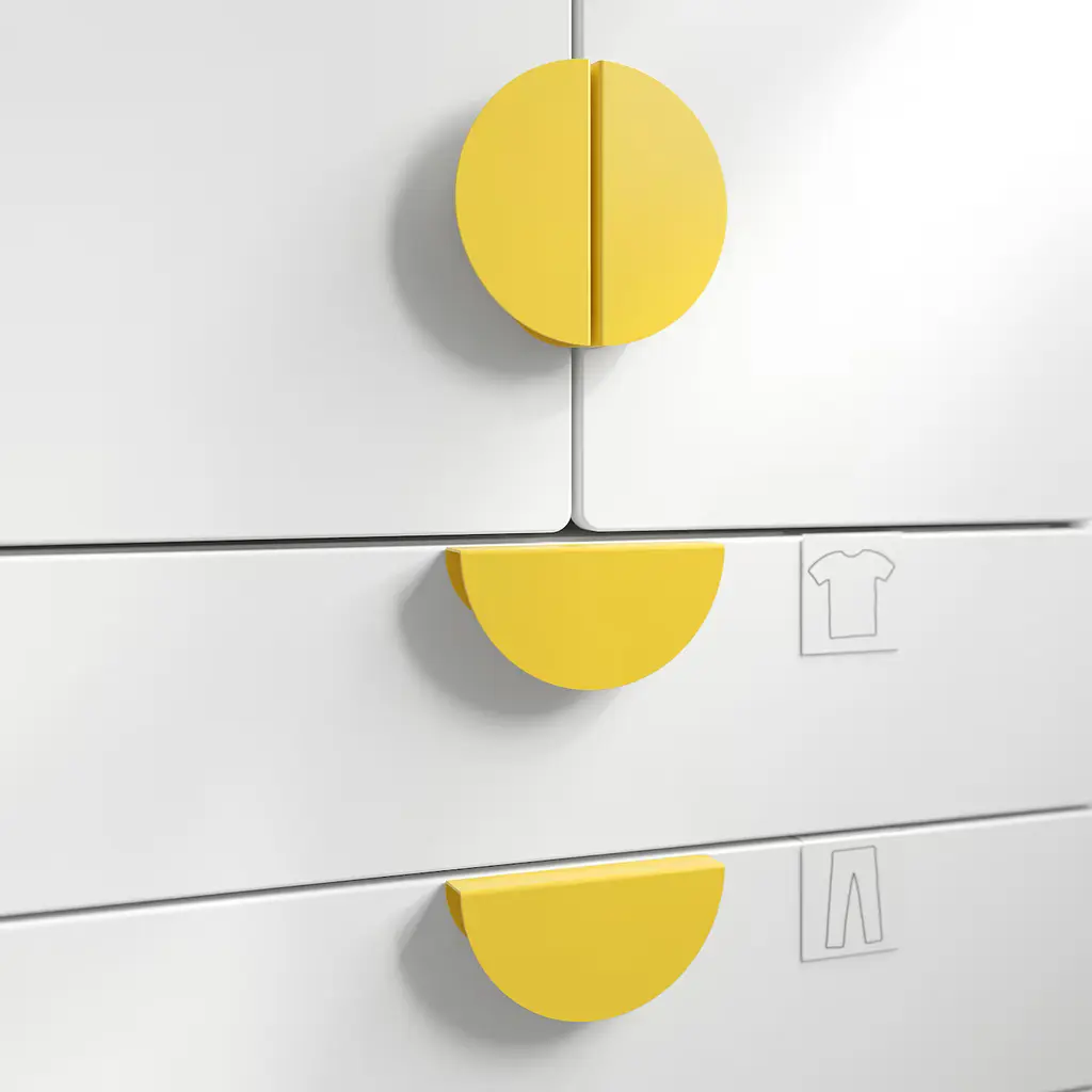 BEGRIPA Handle - yellow/half-round 5 1/8 ". BEGRIPA handles give SMÅSTAD doors and your child's storage combination a playful expression that creates an exciting eye-catcher, sold separately. The soft, round shape makes the handle easy to grip, even for small children.