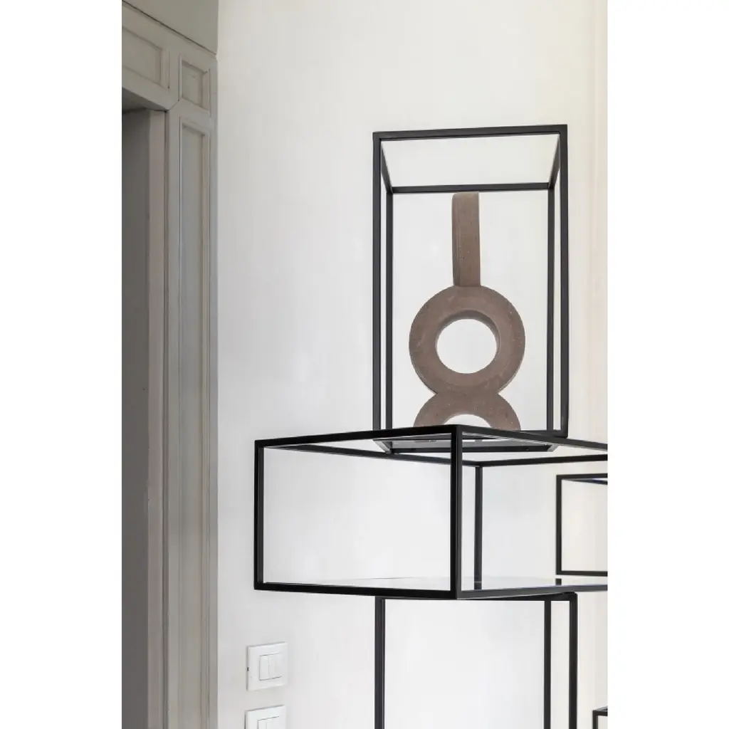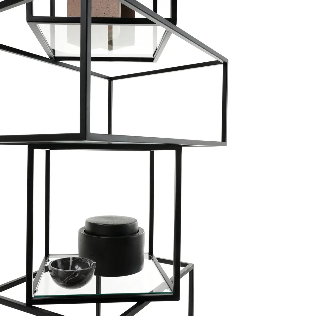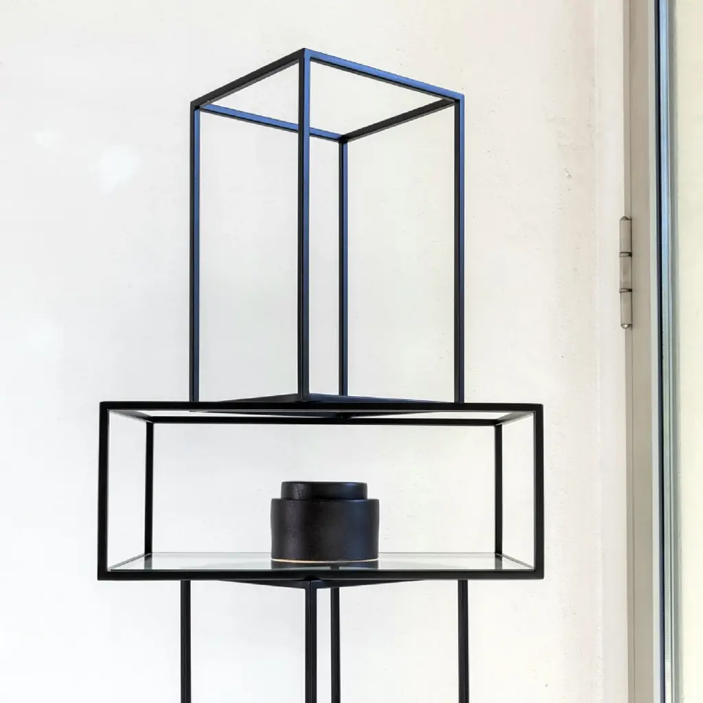 Introducing the elegant and exclusive Black Metal Framed Storage Unit from Mogg Babylon. Crafted from black painted metal and topped with transparent glass shelves, this freestanding container adds a touch of sophistication to any room. Perfect for displaying your prized possessions and books, it's a must-have for any tasteful home.