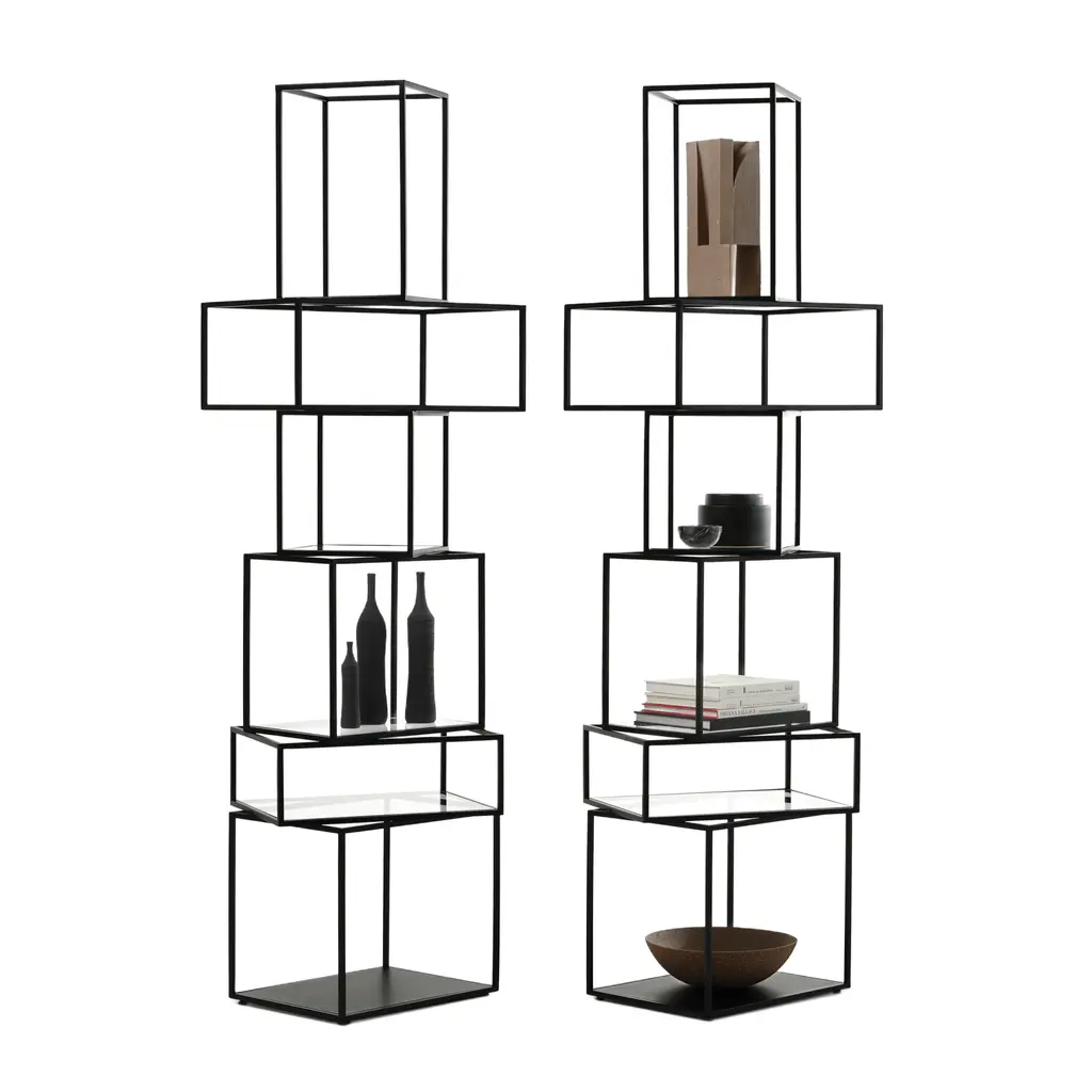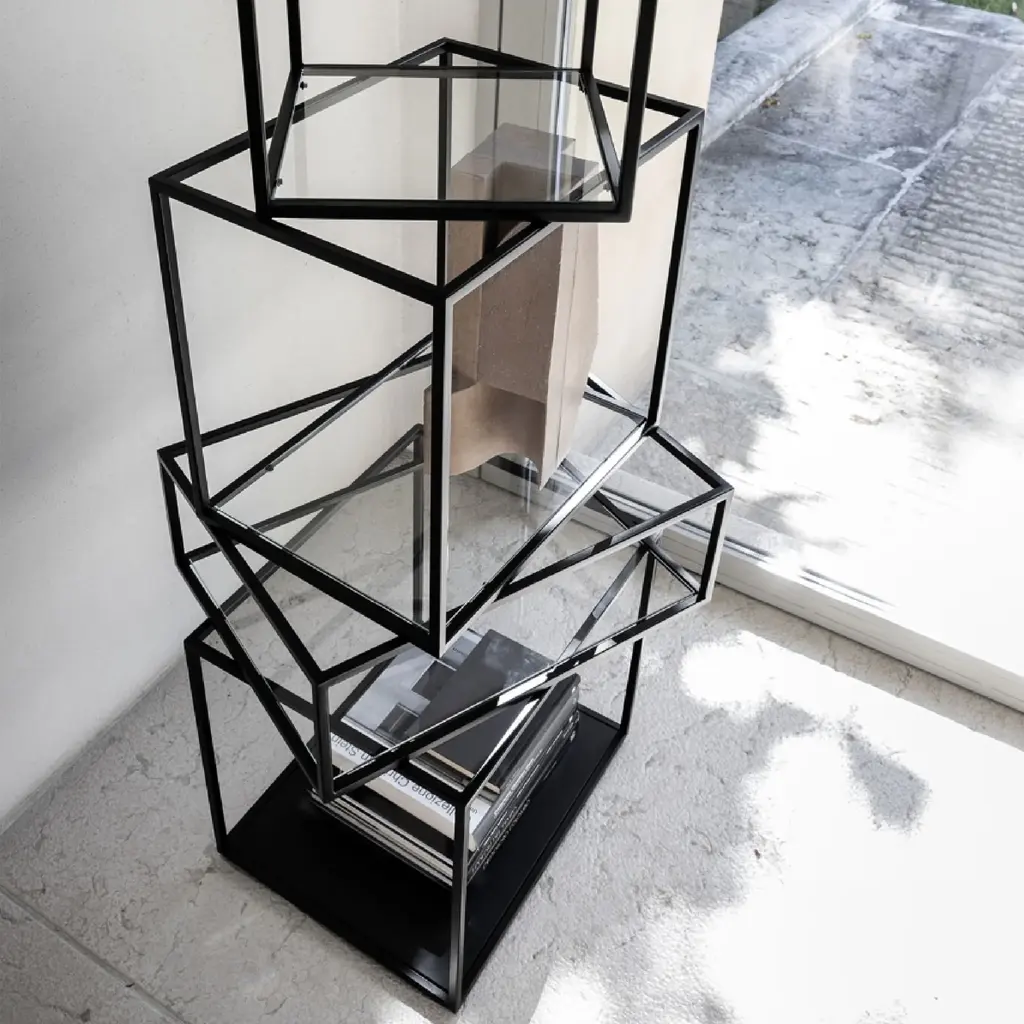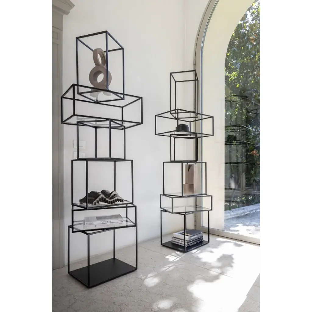 Introducing the elegant and exclusive Black Metal Framed Storage Unit from Mogg Babylon. Crafted from black painted metal and topped with transparent glass shelves, this freestanding container adds a touch of sophistication to any room. Perfect for displaying your prized possessions and books, it's a must-have for any tasteful home.