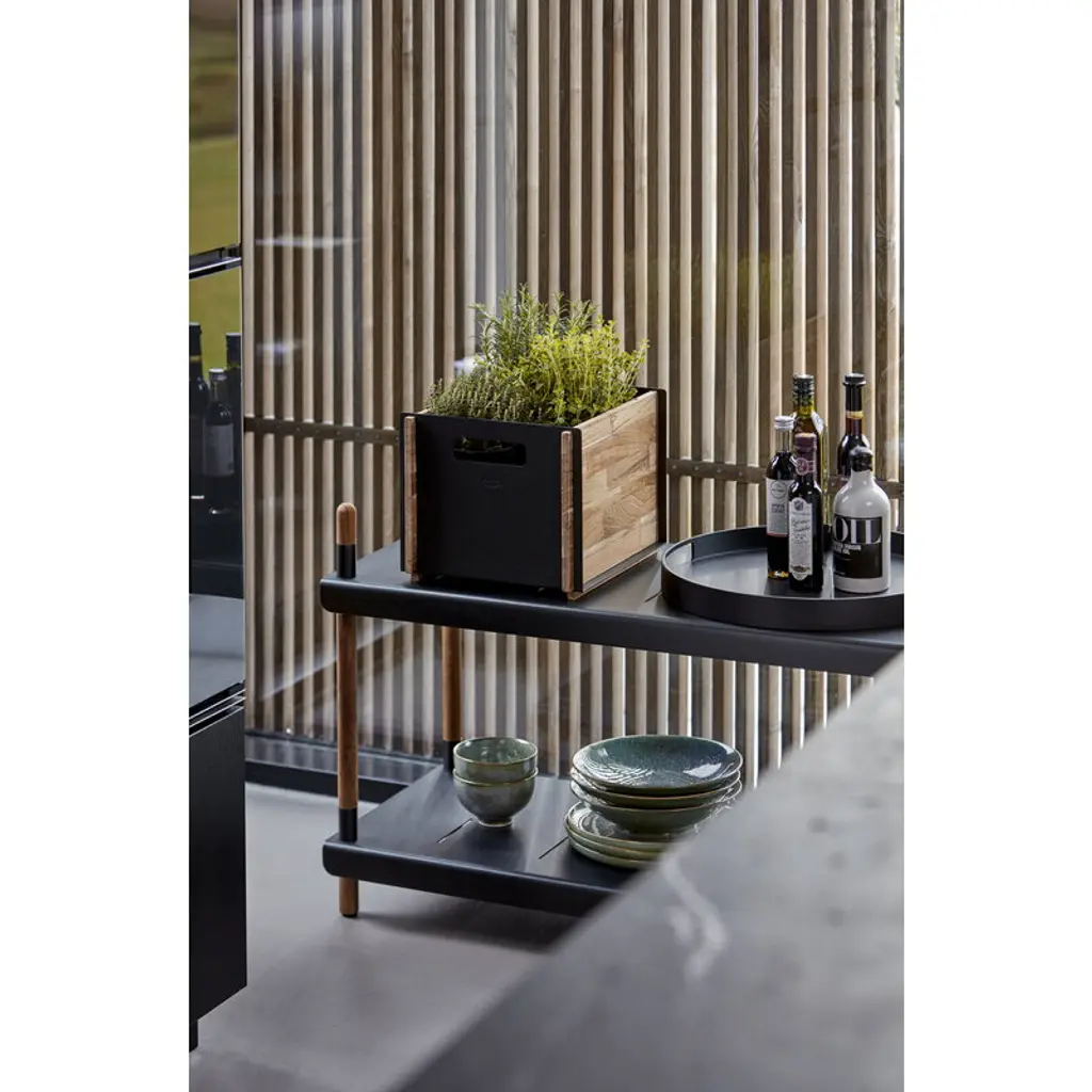 Cane-line’s Box is a functional and durable storage box for all types of small items. Made of aluminum and teak, this weather- and water-resistant storage box is suitable for both indoor and outdoor use. You can use it to store outdoor kitchen or bathroom accessories, books, clothes or even fresh herbs, and you can create a unique storage unit by stacking several boxes on top of each other. The characteristic surface of the sustainably grown, certified teak looks beautiful both indoors and outside, and over time it will gain a charming patina.