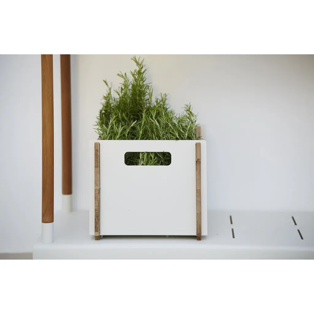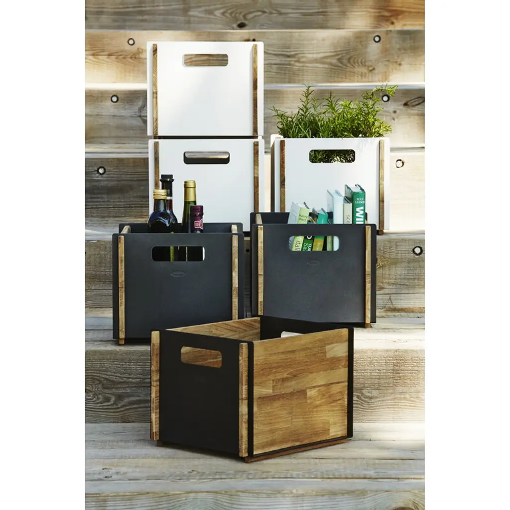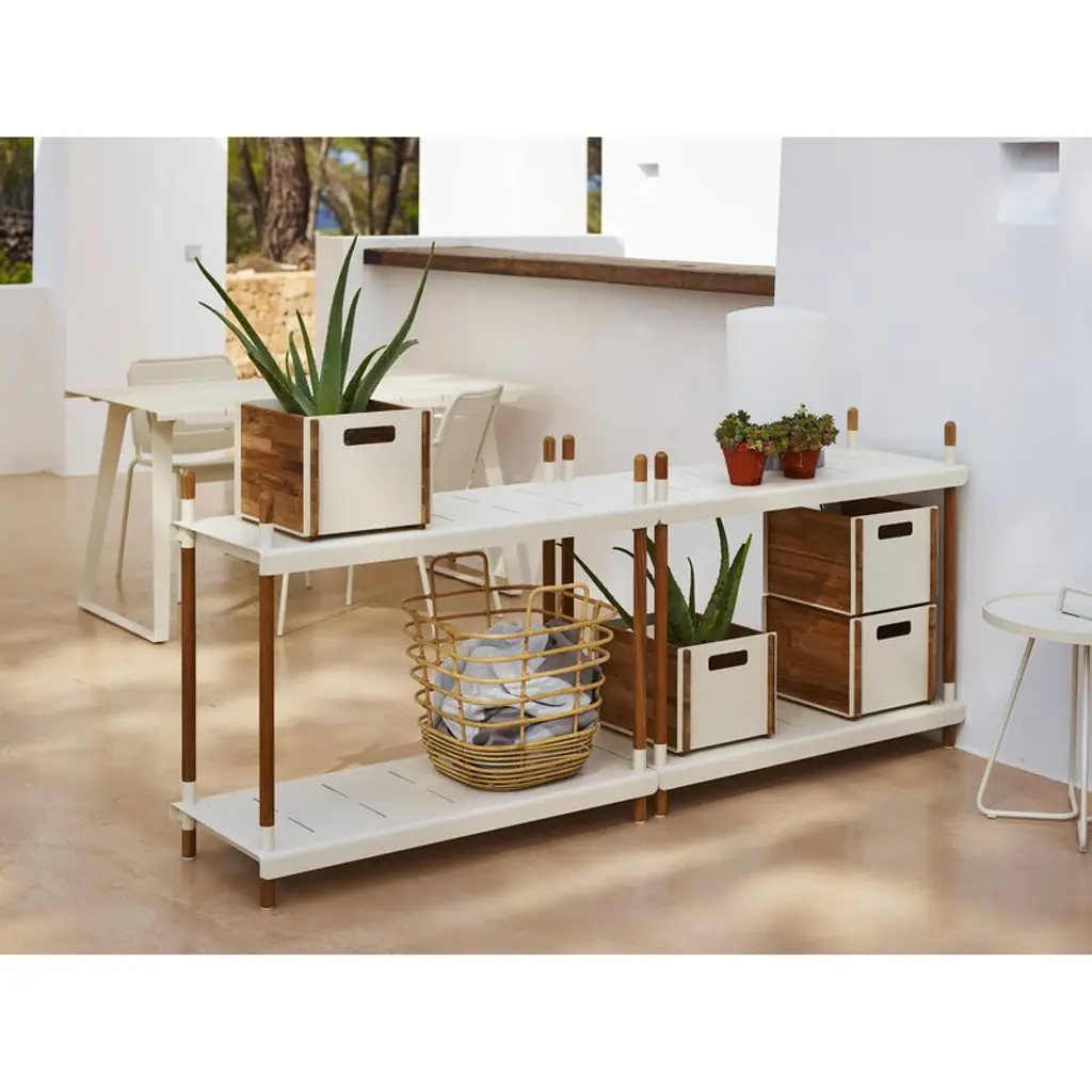 Cane-line’s Box is a functional and durable storage box for all types of small items. Made of aluminum and teak, this weather- and water-resistant storage box is suitable for both indoor and outdoor use. You can use it to store outdoor kitchen or bathroom accessories, books, clothes or even fresh herbs, and you can create a unique storage unit by stacking several boxes on top of each other. The characteristic surface of the sustainably grown, SVLK-certified teak looks beautiful both indoors and outside, and over time it will gain a charming patina.