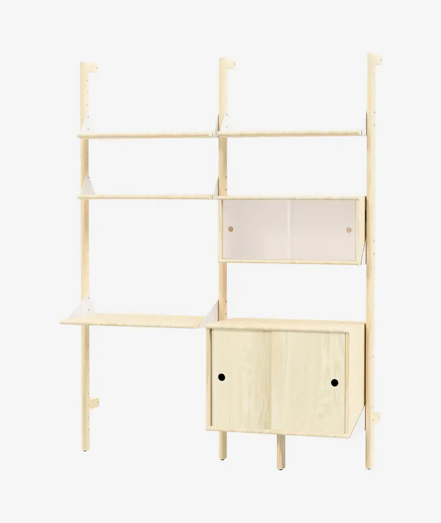 The award-winning Branch Modular Organization System effortlessly blends mid-century style with versatility for a modular piece that gives you an infinite number of elegant storage options for home, office or retail environments. The design features varying configurations that can be transformed into a wide range of organization or display units including bookshelves, desks, and wardrobes. Add-ons like closed-door cabinets allow you to further customize the size, layout, and function of the system to perfectly suit your space. Thoughtfully refined details, such as rounded edges on the shelves and frosted door fronts, soften Branch's aesthetic and enhance its architectural style. Straightforward installation means you can spend more time perfecting your vision and display and less time stressing over instructions. *Additional Add-Ons may be purchased here to customize the configuration.