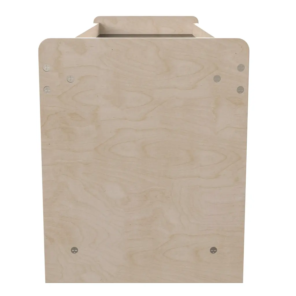 Organization is functional and fun with this 2 tier wooden display shelf with 3 lower storage compartments and a mirrored top for silly faces and imaginative play. Comprised of Greenguard Certified engineered birch plywood in a glossy finish that seals the wood surface to resist stains, yellowing, and scratches, this shelf promotes a healthier indoor environment. The kid-friendly design boasts reachable surfaces, a thickened bottom design, raised upper edges, and rounded corners that prevent abrasions if bumped. This unit holds up to 200 lbs. static weight, assembles in under 30 minutes, and wipes clean with a damp cloth. Purchase other pieces from our classroom collection to create custom configurations to fit your space.