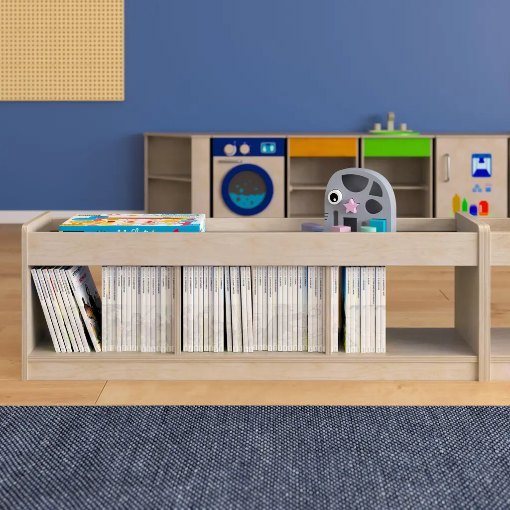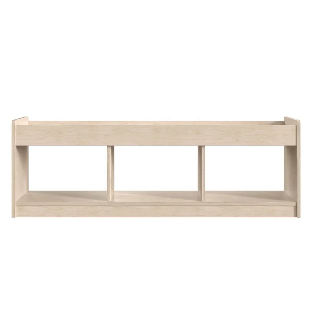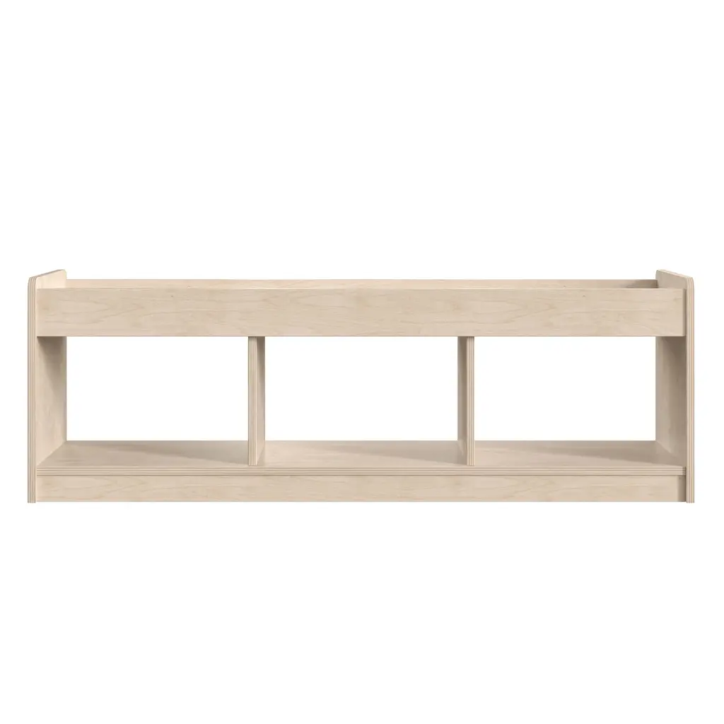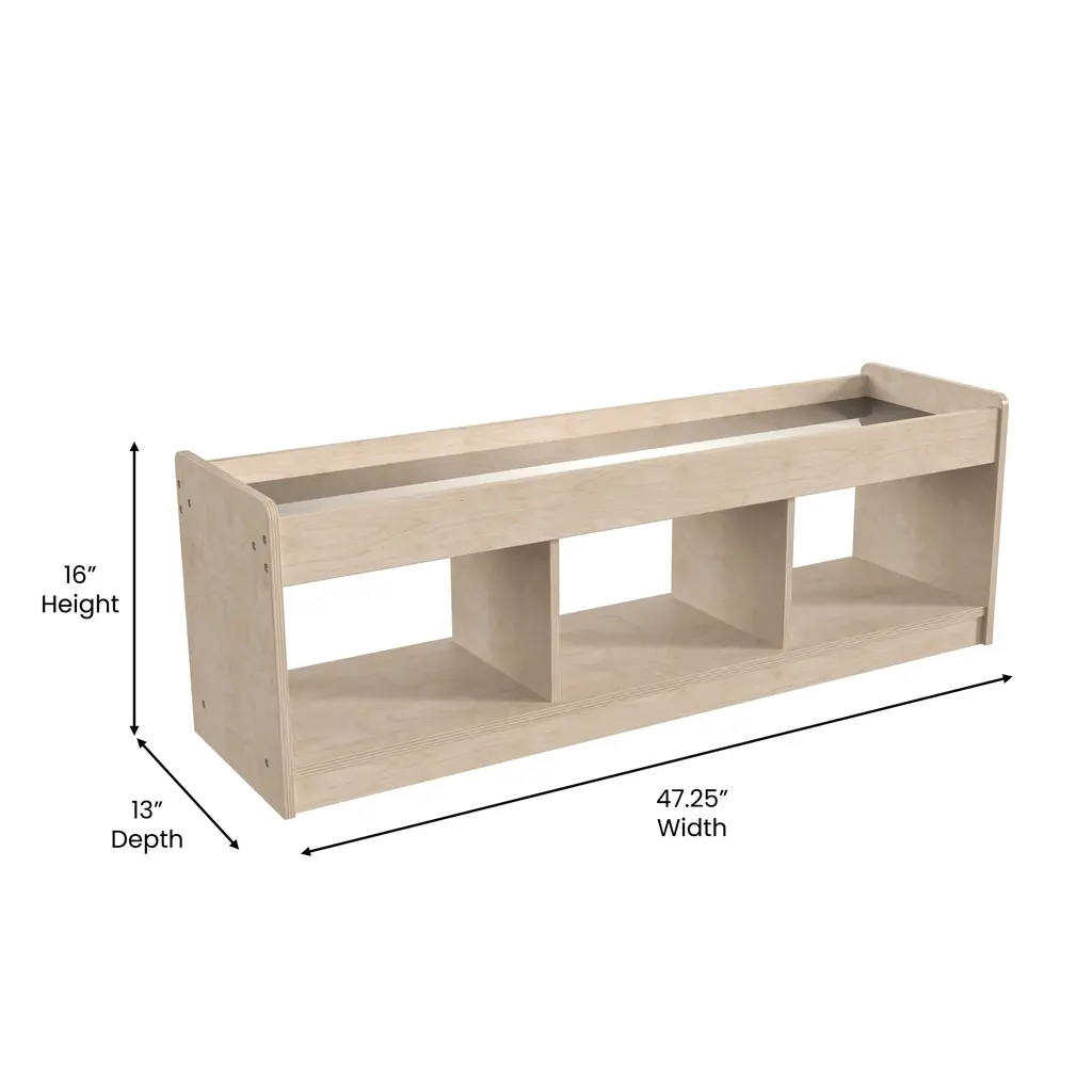 Bright Beginnings Commercial Grade Modular Wooden Classroom 2 Sided, 3 Section, Open Storage Unit With Mirrored Top And Raised Upper Edges