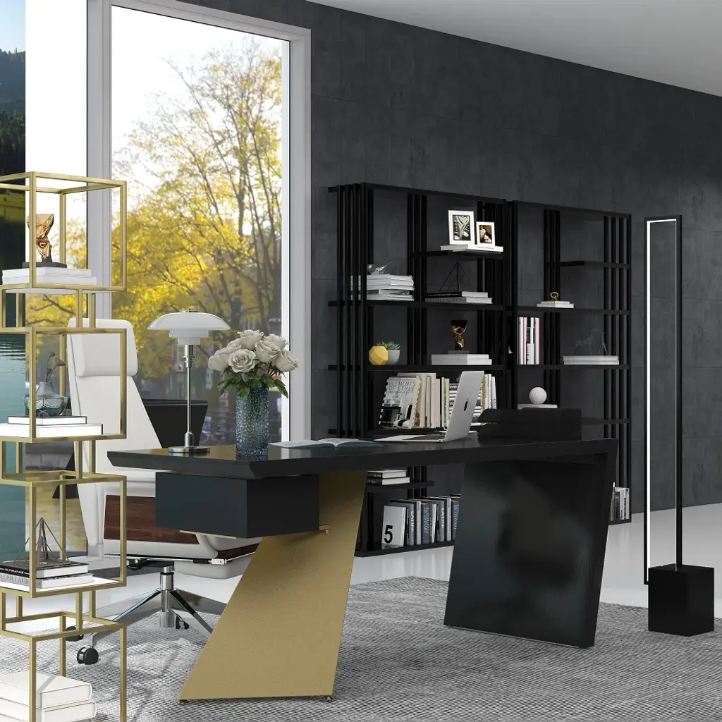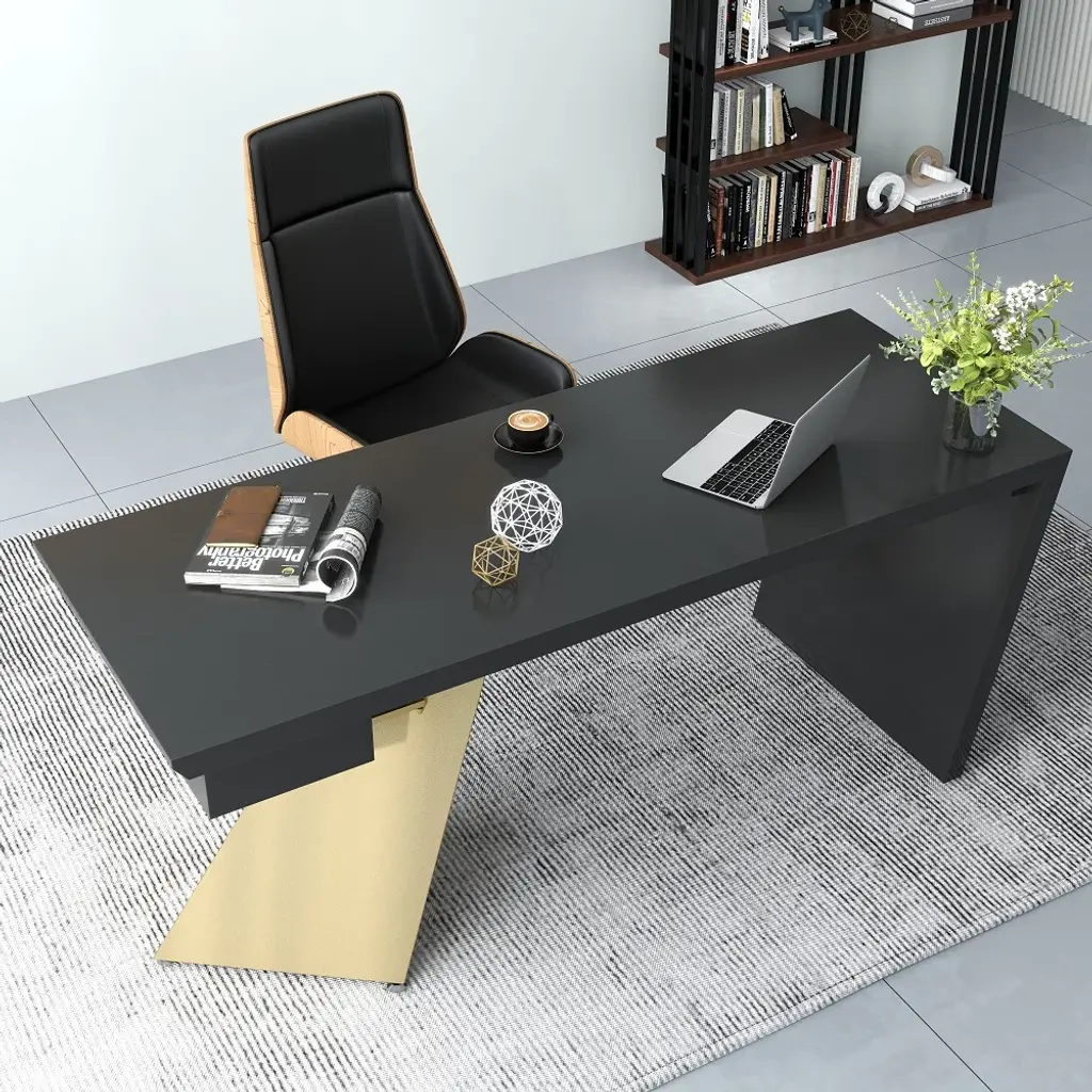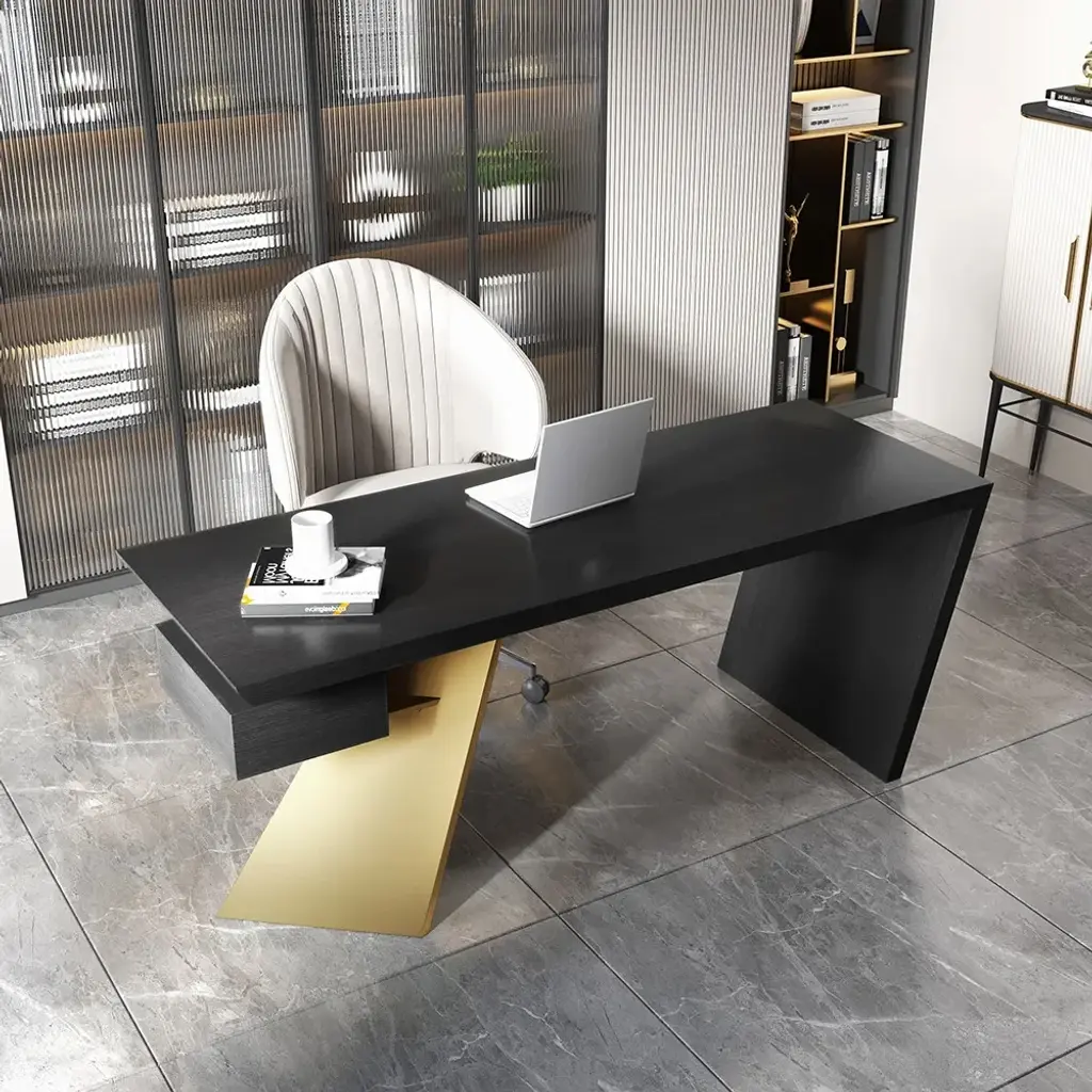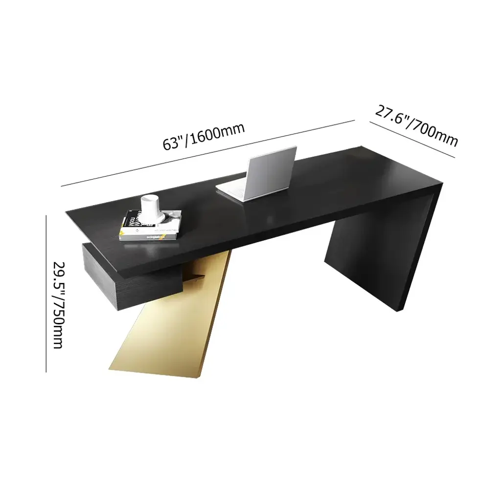 Cabstract 63" Modern Rubber Wood Straight Desk With Drawer, Black & Gold Office Desk