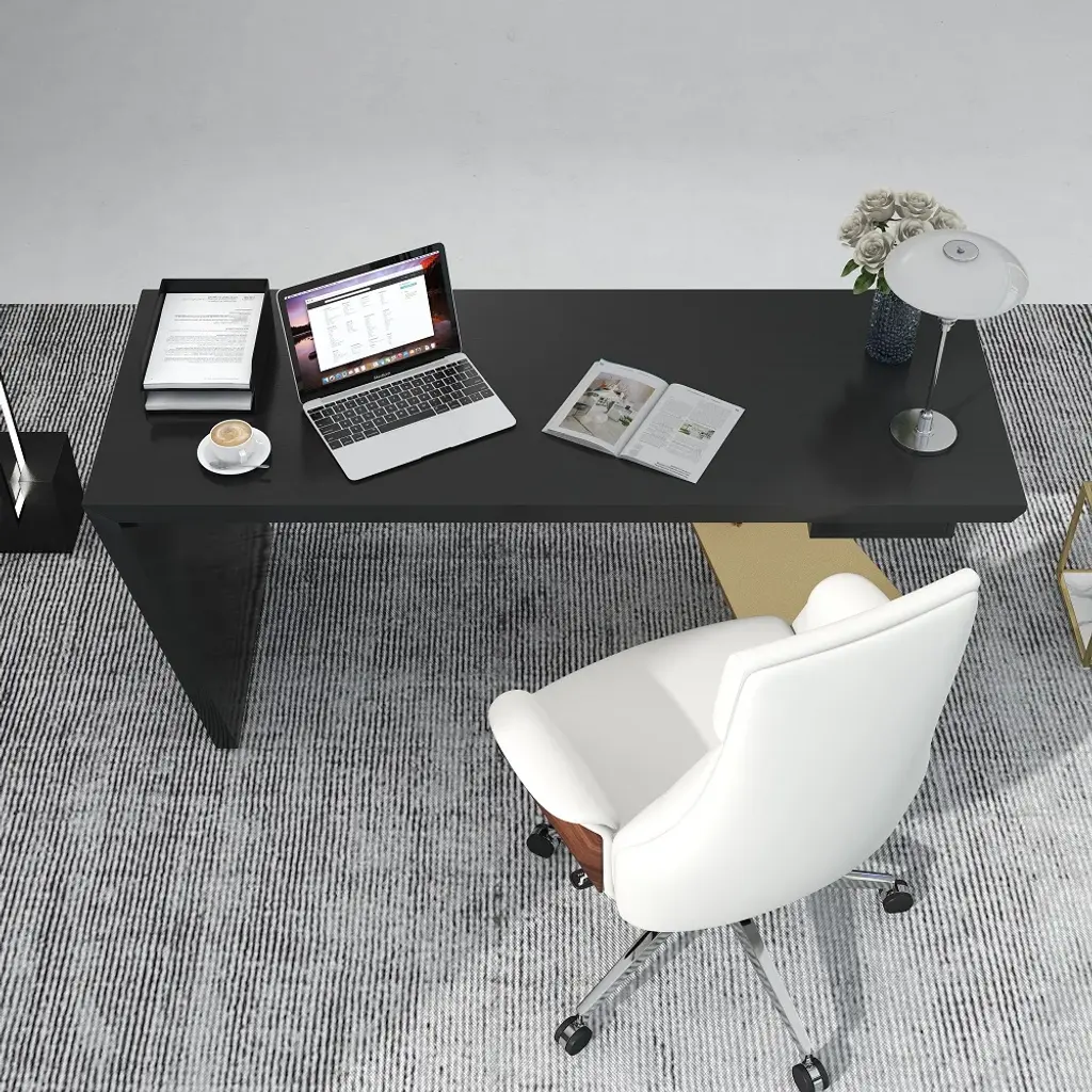 Crafted from sustainable rubberwood and wrought metal, this modern desk combines minimalist design with functionality. Its spacious tabletop and floating drawer offer ample workspace and storage, while the angled legs ensure stability. Perfect for home offices, it blends rustic charm with contemporary elegance.