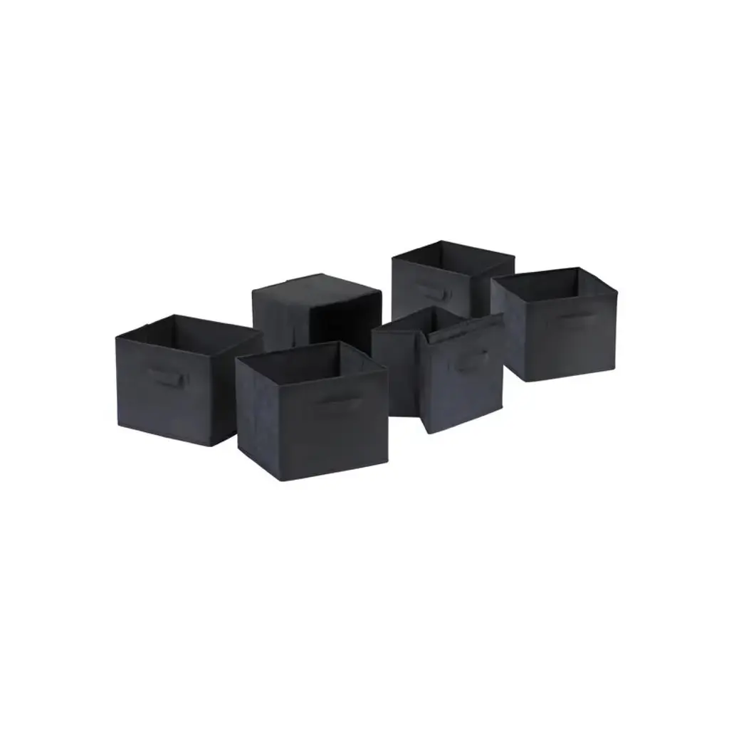 SpecificationShipping Limitations:UnlimitedAssembly Required:YesCarton CFT:0.372Carton Height:5Carton LBS:7Carton Length:12.25Carton Pk:1Carton Width:10.5Collection Name:CapriColor/Finish:BlackCountry Of Origin:ChinaFurniture Style:TransitionalLaunch Date:43990Material:FabricProduct Type:Storage / OrganizationDetailsSet of 6 foldable black fabric baskets. Opened size is 10.9"W x 10"D x 9"H. Can be used as a magazine holder; file holder; or even art project holder. They are great for decorative storage and organization such as for washcloths in the bathroom; note pads at work; or personal items in chest of drawers. When not in use; they fold for easy storage. Easy to assembleSet of 6 foldable black fabric baskets.Open size 10.9"W x 10.06"D x 9"H.Perfect for individual use or pair them with shelf and turn it into a stunning storage unit.nullnullnull