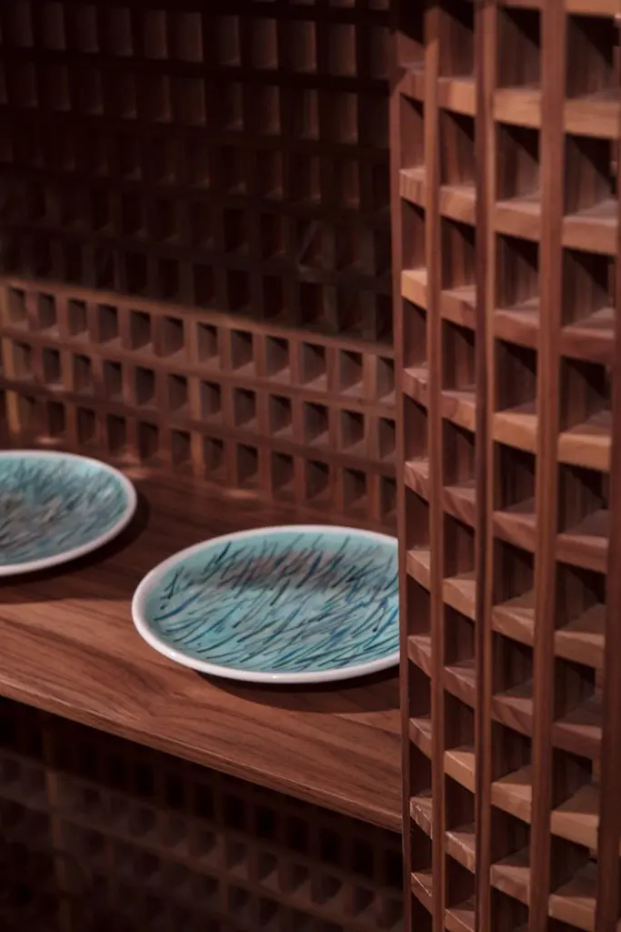 Carabottino is a collection made of a clever play of textures andtransparencies, that makes these objects the centerpiece of any environment. Astorage unit, a mirror or a table that establishes a dialogue between inside andoutside.A wooden grating in a two-dimensional form traditionally made with woodenslats, carabottino is considered to be an accessory element of relativeimportance, similar to window and door frames, an architectural componentthat is not perceived as an object in itself, there are no carabottino objectsor carabottinos that have become objects. Its graphic appearance, a consequenceof its construction logic, makes it recognisable and punctuated by verticaland horizontal intersections; the interplay of full and empty spaces, of imagesthat overlap and are filtered through their weave makes them vibrant,as if they were moving paintings.Design by Cara\Davide for Medulum