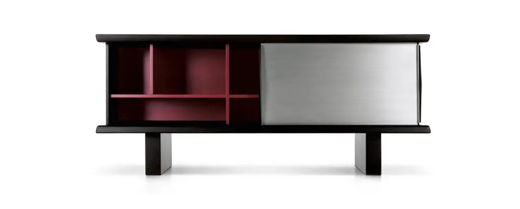 Storage unit designed by Charlotte Perriand in 1939. Relaunched in 2014.Manufactured by Cassina in Italy.Part of the Cassina collection since 2004, the Riflesso storage unit created in 1958 by Charlotte Perriand in association with Steph Simon has a new iteration. As in the case of the Tables en forme, which were designed in the 1930s and then upgraded in the 1950s to a more mature configuration, this multifunctional piece is characterised by wooden shelves with rounded edges with a strong Japanese influence, which was a common theme in Perriand’s oeuvre. As was the case with all her furniture produced during this period, the expressiveness of the material itself became a distinguishing feature, creating soft eye-catching shapes of great elegance. Originally available in just one size and two heights, and only in a black finish, the new version is larger. The piece is available in mahogany, the sliding doors being natural or black anodised aluminium. Important information regarding images of products:Please note that some of the images show other colors and variations of the model, these images are only to present interior design proposals. The item that is selling is on the first image. Important information regarding colour(s) of products:Actual colours may vary. This is due to the fact that every computer monitor, laptop, tablet and phone screen has a different capability to display colours and that everyone sees these colours differently. We try to edit our photos to show all of our products as life-like as possible, but please understand the actual colour may vary slightly from your monitorAbout the designer:Charlotte Perriand (1903-1999) she was born in Paris in 1903 and attended the E´cole de l'Union centrale des Arts décoratifs from 1920-1925. Charlotte Perriand designed furniture made of anodized aluminium and chromium-plated steel, showing it at the 1927 "Salon d'Automne" in Paris.After meeting Le Corbusier, Charlotte Perriand worked with him and Pierre Jeanneret until 1937. The revolutionary tubular steel furnishings and system furniture designed by the three were presented as "Équipement de l'habitation" (home equipment) at the 1929 "Salon d'Automne," where they were widely acclaimed.In 1930 the Union Des Artistes Modernes (UAM) was founded in Paris, a group that viewed itself as a countermovement challenging such establishment organizations as the "Salon d'Automne" and also advocated Art Deco and Modernism. From 1931 Charlotte Perriand showed her own work solo there. In 1937 Charlotte Perriand and Pierre Jeanneret collaborated on designing a mountain chalet of sheet aluminium, which they showed at the "Exposition Internationale des Arts et Techniques dans la Vie Moderne" and later they came up with plans for prefab houses made of aluminium.In 1940 Charlotte Perriand became a design consultant to the Japanese Board of Trade. She lived in Japan until 1946 and from then on Charlotte Perriand's designs reveal overtones of the Japanese feeling for form, as shown by the 1953 chair "Synthe`se des Arts."About the manufacturer:In a continuing dialogue between past, present, and future, Cassina has created the I Maestri collection, revisiting furnishing designs by the twentieth century’s best-known architects, including Le Corbusier, Pierre Jeanneret, Charlotte Perriand, Charles Rennie Mackintosh, Gerrit Thomas Rietveld, Franco Albini, Frank Lloyd Wright and Marco Zanuso. While the designs and functional concepts have been precisely preserved, the models have been manufactured using evolved technology. This is also the company that has manufactured iconic pieces of contemporary design from the 50’s to the present day, ideated by some of the most important international designers. Today Cassina continues to look to the future of design with audacious, passionate curiosity and an open, holistic approach. It affirms its exclusive ability to furnish a home’s living and dining spaces completely and iconically with The Cassina Perspective: a concept, a philosophy, an informed, futuristic thought. A detailed, expansive horizon of combinations; when placed together, the products have an innovative soul and the modern icons create authentic, welcoming, personal atmospheres involved in a conversation dominated by a code of design excellence, formal sensitive awareness, solidity and cultural authority.