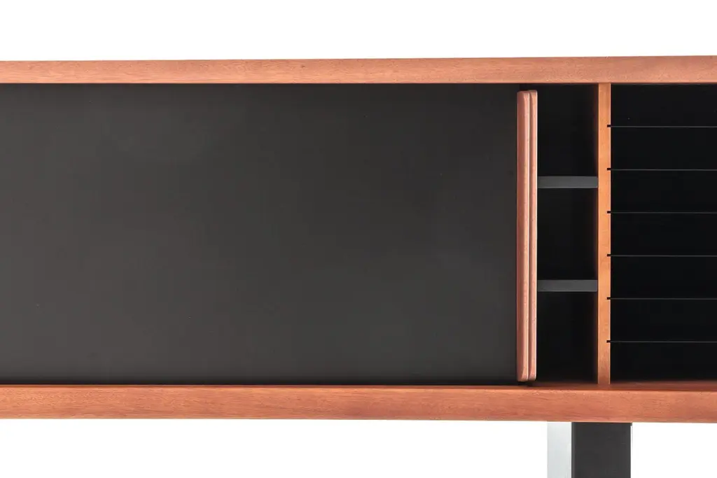 The Charlotte Perriand 513 Riflesso storage unit, reissued by Cassina, is a true work of art that reflects the designer's impeccable taste and sense of style. Originally designed in 1939, this piece has been reissued since 2014 and continues to captivate audiences with its sleek and minimalistic design. The cabinet features a unique play of light and shadow created by the way the surface reflects its surroundings. This, coupled with the pure lines and exceptional craftsmanship, make this piece a true collector's item.Crafted from high-quality materials, this storage unit exudes luxury and sophistication. The cabinet is made of fine natural oak and features a subtle play of textures and colors that adds depth and dimension to the piece. The sliding doors are made of smoked glass, which adds a touch of elegance and transparency to the design. Every detail has been carefully considered to create a piece that is both functional and aesthetically pleasing.Cassina, a renowned Italian brand known for its commitment to quality and design excellence, has reissued this piece to the highest standards of craftsmanship. The company's dedication to preserving the original design while incorporating modern production techniques ensures that each piece is of the highest quality and retains the exclusivity that collectors and connoisseurs demand.In summary, the Charlotte Perriand 513 Riflesso storage unit is a stunning piece of furniture that reflects the designer's mastery of form and function. Its timeless design, exceptional craftsmanship, and high-quality materials make it a true work of art and a must-have for any collector or design enthusiast.--------Storage unit designed by Charlotte Perriand in 1939. Relaunched in 2014.Manufactured by Cassina in Italy.Part of the Cassina collection since 2004, the Riflesso storage unit created in 1958 by Charlotte Perriand in association with Steph Simon has a new iteration. As in the case of the Tables en forme, which were designed in the 1930s and then upgraded in the 1950s to a more mature configuration, this multifunctional piece is characterised by wooden shelves with rounded edges with a strong Japanese influence, which was a common theme in Perriand’s oeuvre. As was the case with all her furniture produced during this period, the expressiveness of the material itself became a distinguishing feature, creating soft eye-catching shapes of great elegance. Originally available in just one size and two heights, and only in a black finish, the new version is larger. The piece is available in mahogany, the sliding doors being natural or black anodised aluminium. Important information regarding images of products:Please note that some of the images show other colors and variations of the model, these images are only to present interior design proposals. The item that is selling is on the first image. Important information regarding colour(s) of products:Actual colours may vary. This is due to the fact that every computer monitor, laptop, tablet and phone screen has a different capability to display colours and that everyone sees these colours differently. We try to edit our photos to show all of our products as life-like as possible, but please understand the actual colour may vary slightly from your monitorAbout the designer:Charlotte Perriand (1903-1999) she was born in Paris in 1903 and attended the E´cole de l'Union centrale des Arts décoratifs from 1920-1925. Charlotte Perriand designed furniture made of anodized aluminium and chromium-plated steel, showing it at the 1927 "Salon d'Automne" in Paris.After meeting Le Corbusier, Charlotte Perriand worked with him and Pierre Jeanneret until 1937. The revolutionary tubular steel furnishings and system furniture designed by the three were presented as "Équipement de l'habitation" (home equipment) at the 1929 "Salon d'Automne," where they were widely acclaimed.In 1930 the Union Des Artistes Modernes (UAM) was founded in Paris, a group that viewed itself as a countermovement challenging such establishment organizations as the "Salon d'Automne" and also advocated Art Deco and Modernism. From 1931 Charlotte Perriand showed her own work solo there. In 1937 Charlotte Perriand and Pierre Jeanneret collaborated on designing a mountain chalet of sheet aluminium, which they showed at the "Exposition Internationale des Arts et Techniques dans la Vie Moderne" and later they came up with plans for prefab houses made of aluminium.In 1940 Charlotte Perriand became a design consultant to the Japanese Board of Trade. She lived in Japan until 1946 and from then on Charlotte Perriand's designs reveal overtones of the Japanese feeling for form, as shown by the 1953 chair "Synthe`se des Arts."About the manufacturer:In a continuing dialogue between past, present, and future, Cassina has created the I Maestri collection, revisiting furnishing designs by the twentieth century’s best-known architects, including Le Corbusier, Pierre Jeanneret, Charlotte Perriand, Charles Rennie Mackintosh, Gerrit Thomas Rietveld, Franco Albini, Frank Lloyd Wright and Marco Zanuso. While the designs and functional concepts have been precisely preserved, the models have been manufactured using evolved technology. This is also the company that has manufactured iconic pieces of contemporary design from the 50’s to the present day, ideated by some of the most important international designers. Today Cassina continues to look to the future of design with audacious, passionate curiosity and an open, holistic approach. It affirms its exclusive ability to furnish a home’s living and dining spaces completely and iconically with The Cassina Perspective: a concept, a philosophy, an informed, futuristic thought. A detailed, expansive horizon of combinations; when placed together, the products have an innovative soul and the modern icons create authentic, welcoming, personal atmospheres involved in a conversation dominated by a code of design excellence, forma