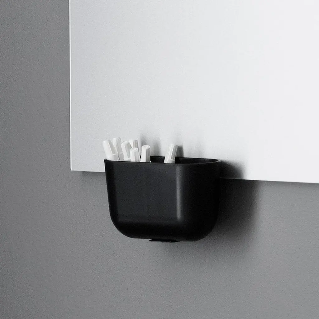 CHAT BOARD® Storage Unit is a practical two-compartment storage box for markers, erasers and other small accessories. It is made of powder coated steel and injection molded ABS and is available in 1 size and 3 different versions: with a combined board and wall bracket, on a tall floor stand and with a low table stand.