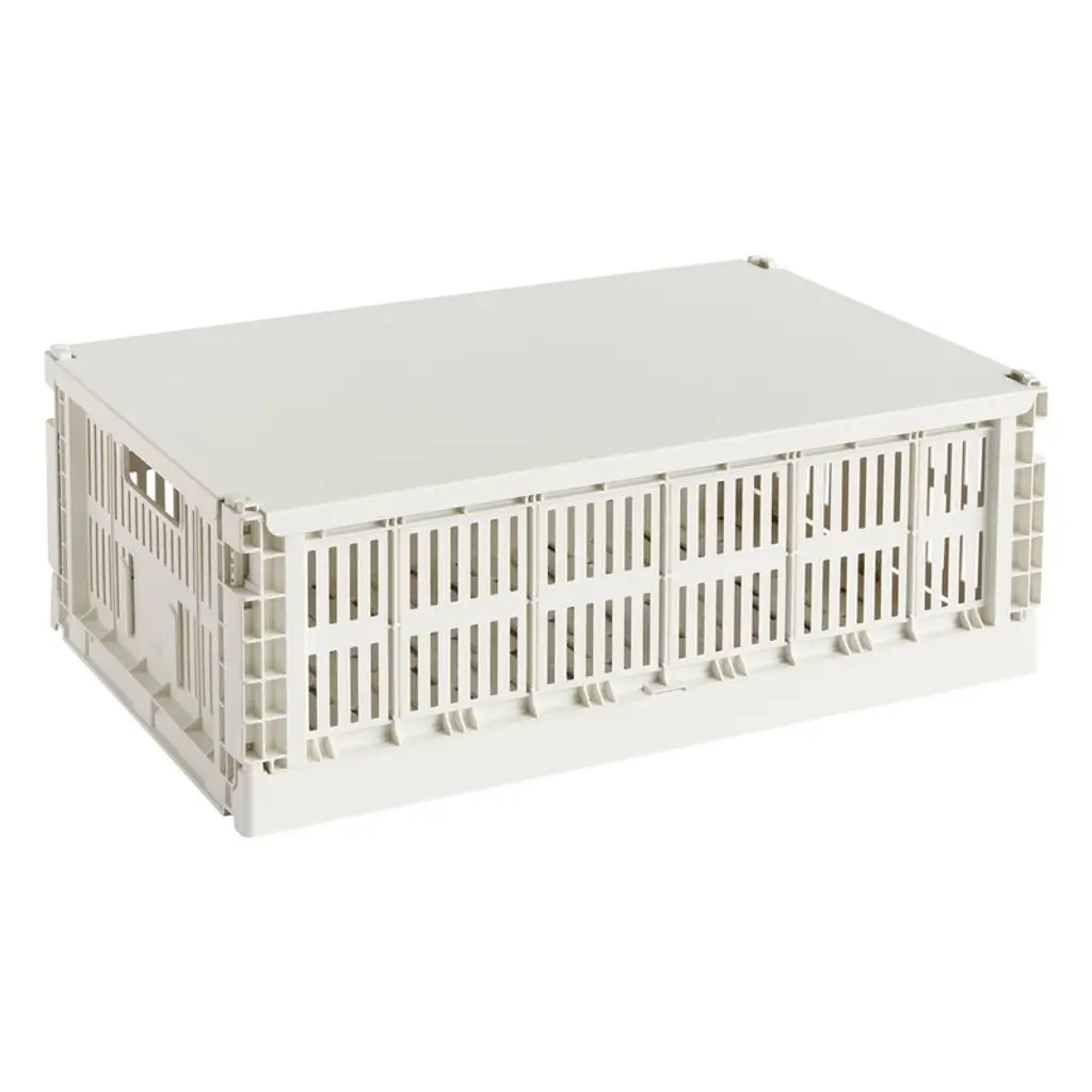 HAY's Color Crate lid transforms your Color Crate containers into a handy storage unit for your home office, bedroom or hallway – the possibilities are endless. The steel lid fits Color Crate boxes made of recycled plastic: L size fits the large-sized box. Lids are available in many colors: mix a lid and a box of different shades to create a playful color combination! Add the wheels which are sold separately, and you will have a convenient, movable side table with a lot of storage space. The Color Crates are characterized by functional design, industrial esthetics and a wide range of delicious colors. The compact, stackable containers are great for storing all types of items from toys to office supplies, and their airy, perforated design makes them perfect for food and bathroom accessories, too.