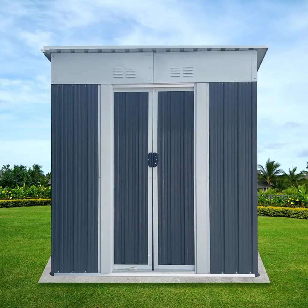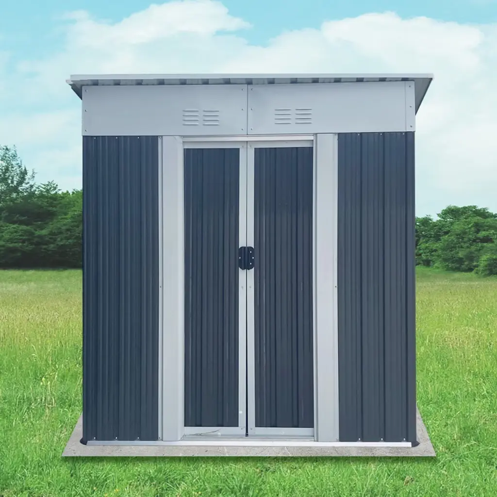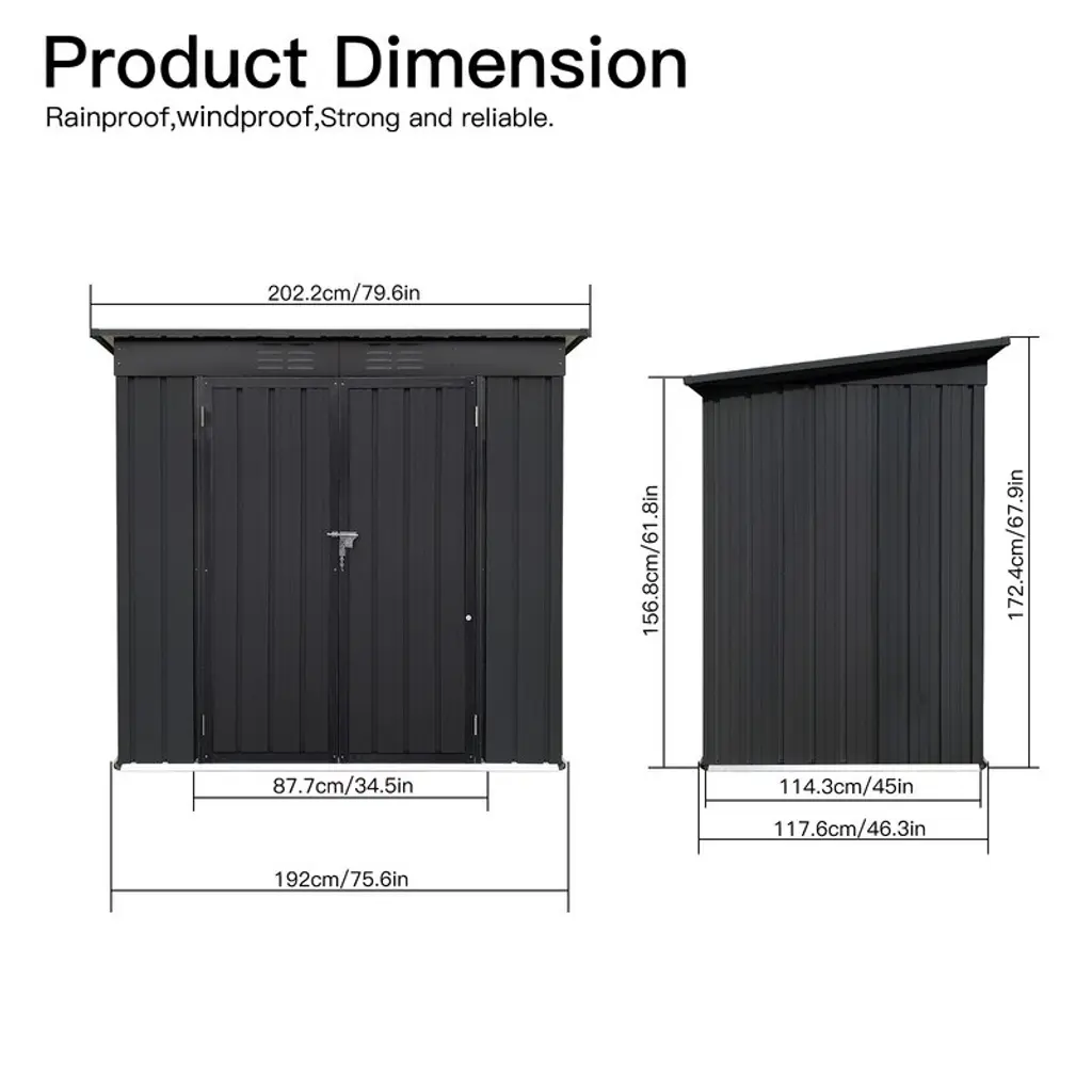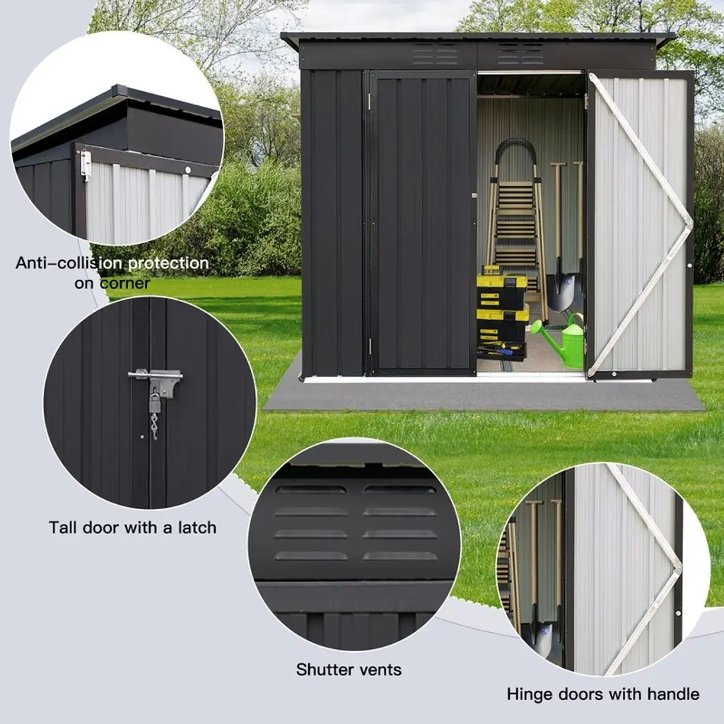 Compact 4Ft X 6Ft Metal Garden Shed, Black Outdoor Storage Unit Without Built-In Foundation - 46.30in. W X75.60in.dx67.90in. H - Black