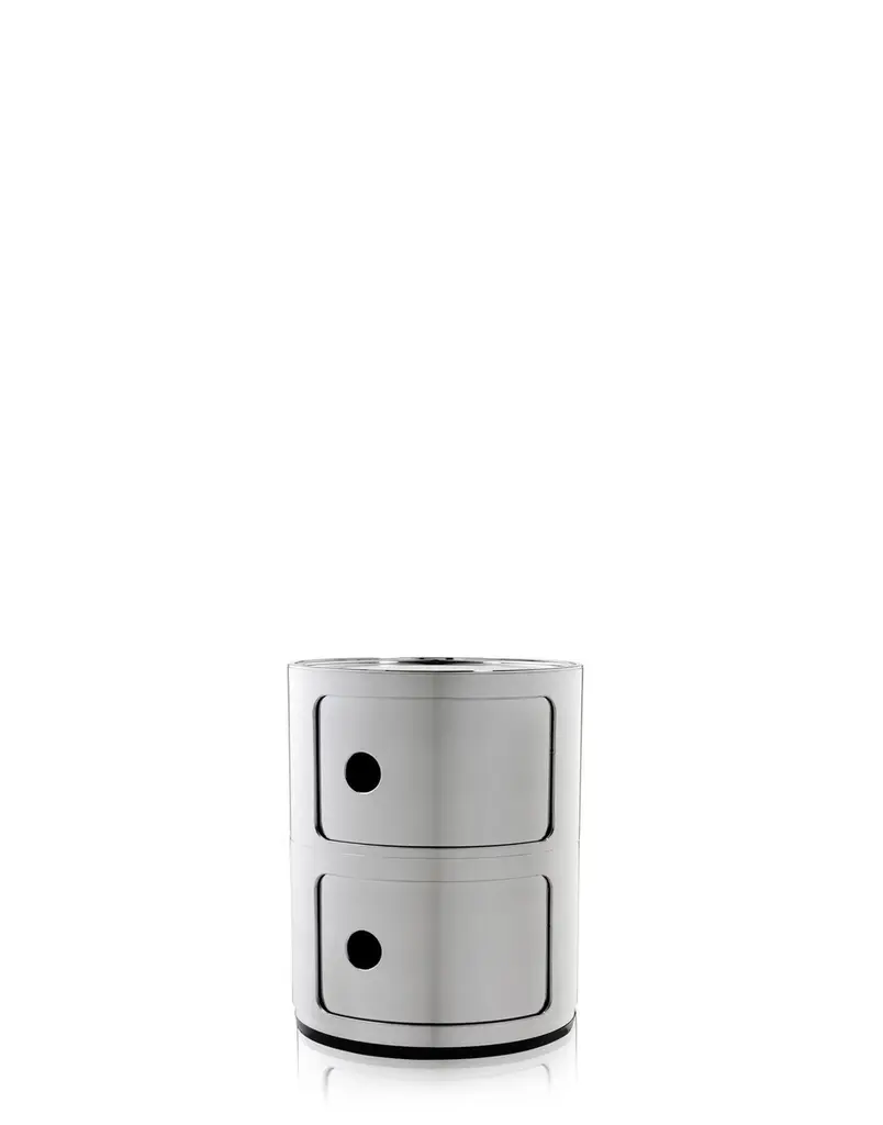The modular elements were designed to meet different needs and to fit perfectly into every room in the home. Componibili first appeared in 1967 and have become a timeless furnishing classic. Today’s Componibili are 32 cm in diameter. Thanks to fixed compositions of two, three or four elements, these products are both functional and practical in all environments. This model comes in six glossy finishes and one matte silver finish.