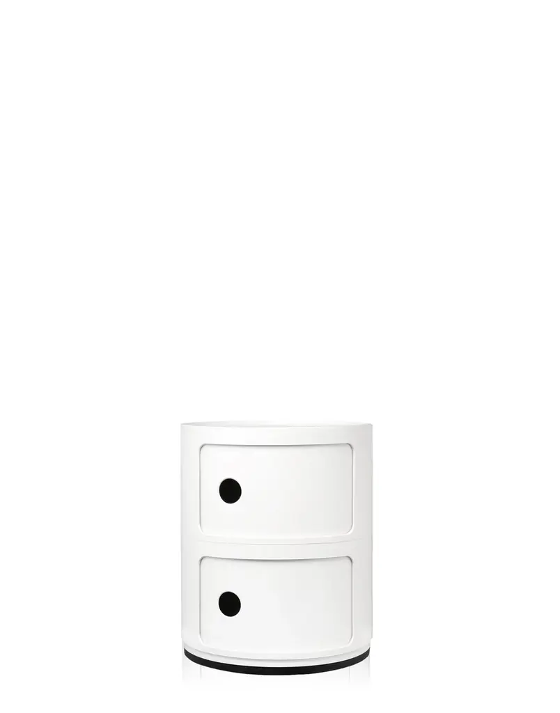 The Componibile, one of the brand’s greatest best-sellers, is available in matt black and white, in an additional variant of one of Kartell’s most famous and instantly recognisable products, featured in homes all over the world for more than 50 years. A highly functional product in a modern, trend-setting finish. The new edition is made of recycled industrial materials, and has the same robust construction and functionality as the original. Available with fixed, non-stackable, two or three element structures of 32 cm in diameter. Soft touch effect mat finish.