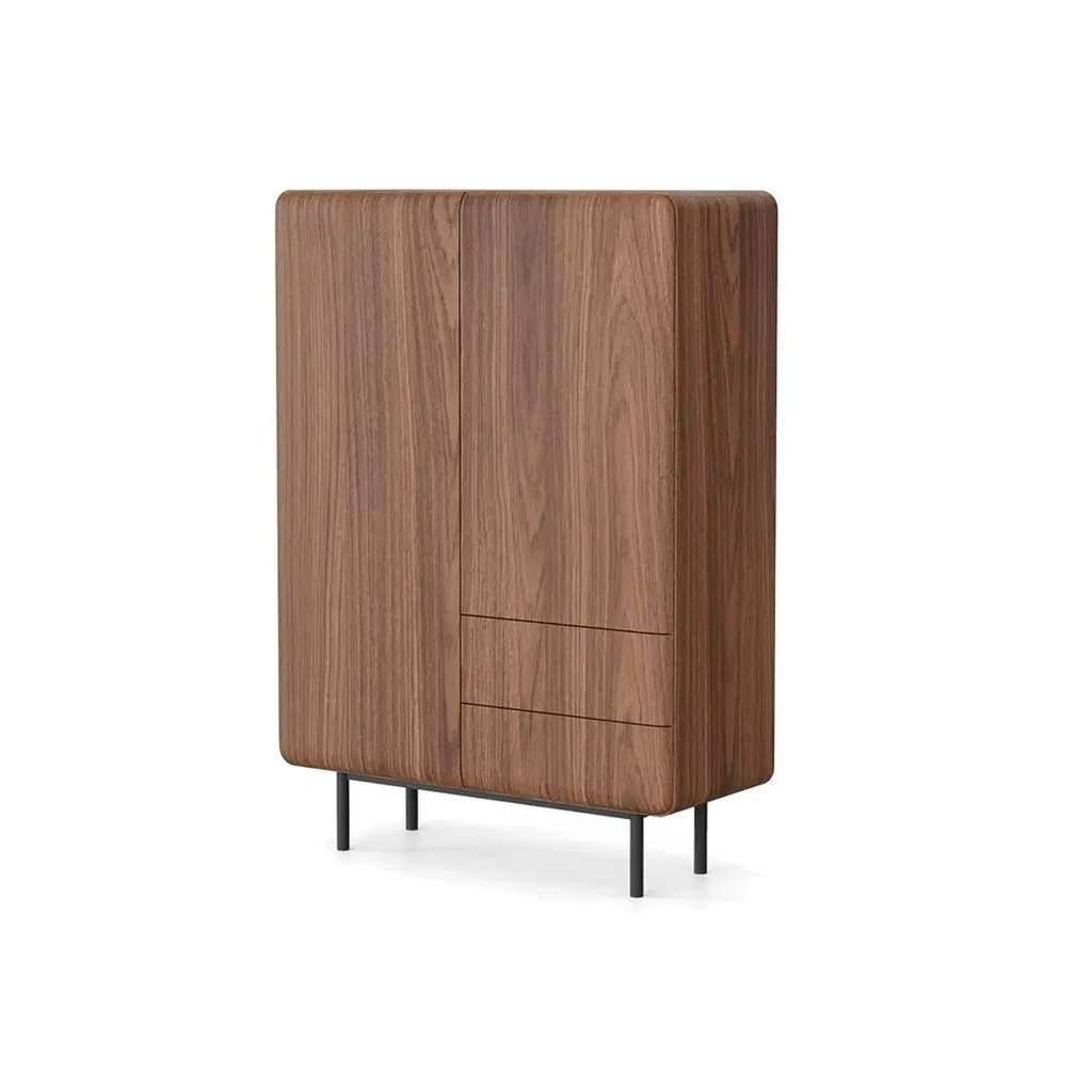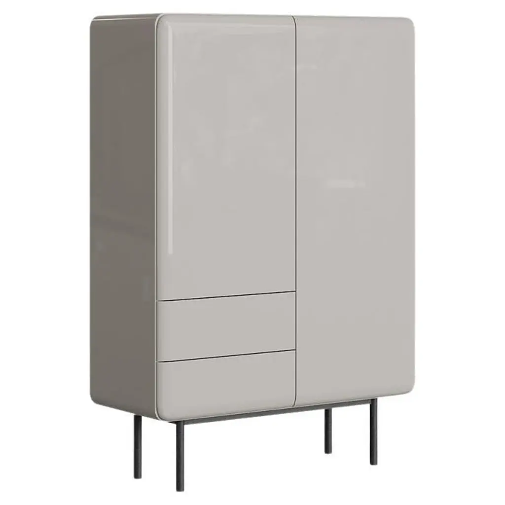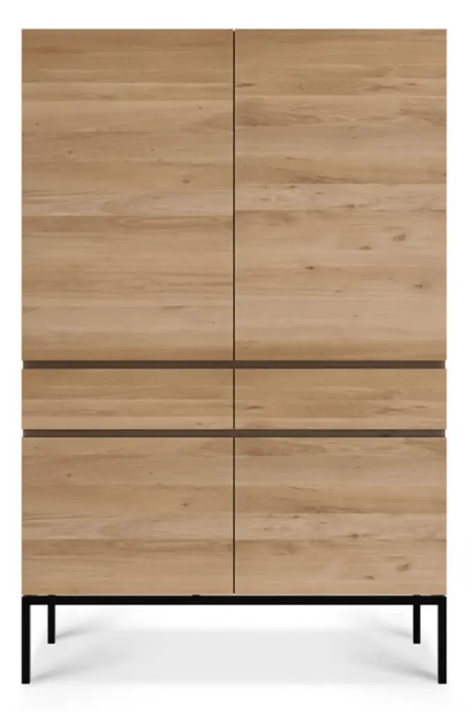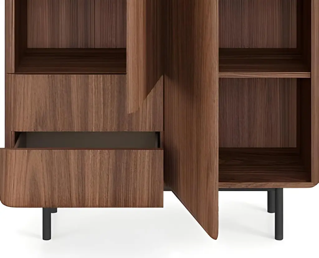 Perfect for the dining room or living room, this modern china cabinet sits elegantly on low metal legs, offering a spacious storage solution with its two full-height doors. The natural oak finish adds a sophisticated touch, while the asymmetrical design introduces an unexpected element of visual interest. Thoughtfully integrated drawers enhance functionality, making it an ideal option for use as a bar cabinet or storage unit.This cabinet is fully customizable and can be lacquered in any RAL color, allowing you to personalize the piece to suit your space perfectly.We do our best to expedite production and to ship and deliver product within the listed lead time, however current lead times might be longer due to global shipping backlog and delays. These delays are out of our control and cannot be a reason to cancel an order.
