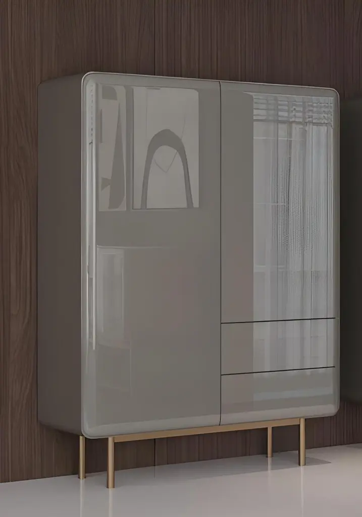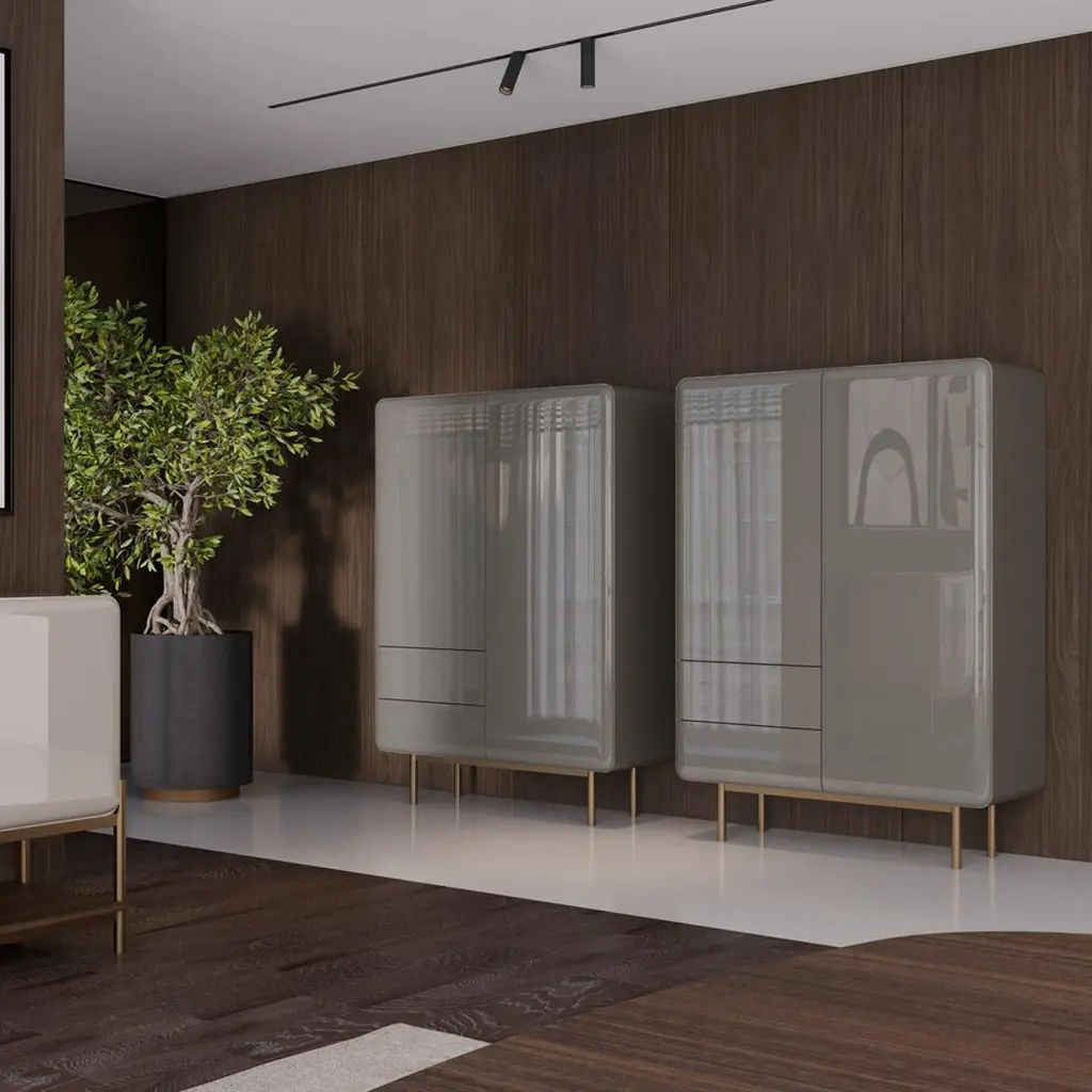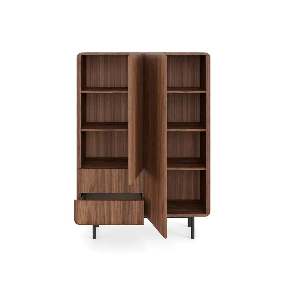 Perfect for the dining room or living room, this modern china cabinet sits elegantly on low metal legs, offering a spacious storage solution with its two full-height doors. The natural oak finish adds a sophisticated touch, while the asymmetrical design introduces an unexpected element of visual interest. Thoughtfully integrated drawers enhance functionality, making it an ideal option for use as a bar cabinet or storage unit.This cabinet is fully customizable and can be lacquered in any RAL color, allowing you to personalize the piece to suit your space perfectly.We do our best to expedite production and to ship and deliver product within the listed lead time, however current lead times might be longer due to global shipping backlog and delays. These delays are out of our control and cannot be a reason to cancel an order.