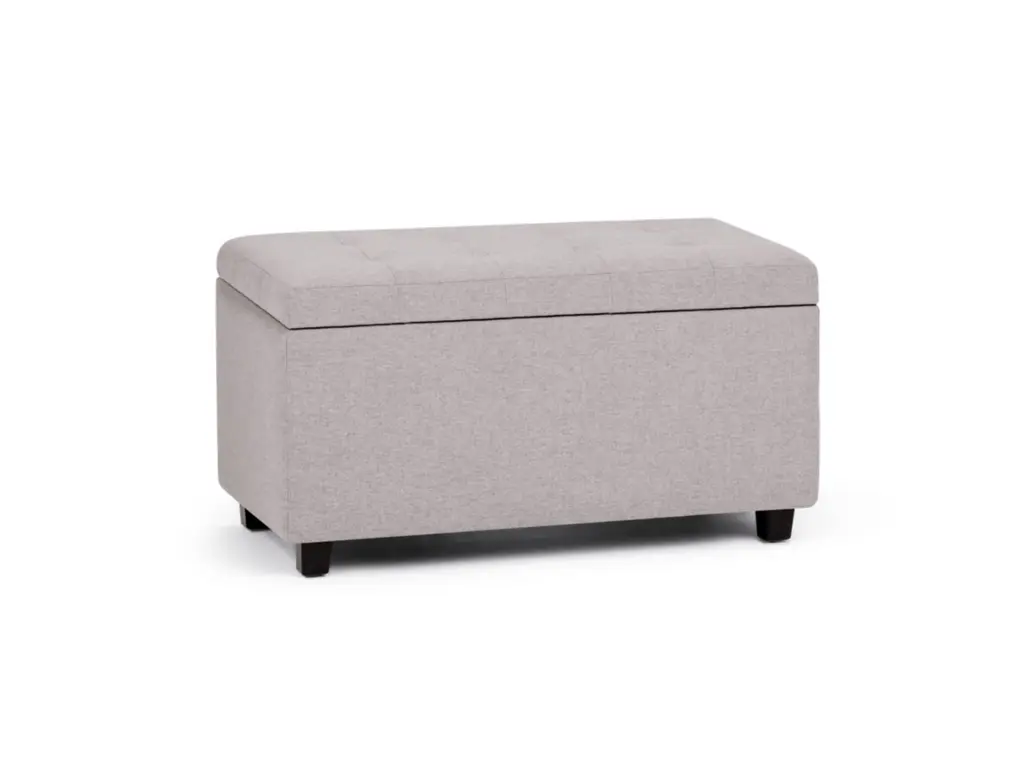 Cosmopolitan 34 Inch Wide Transitional Rectangle Storage Ottoman In Cloud Grey Linen Look Fabric