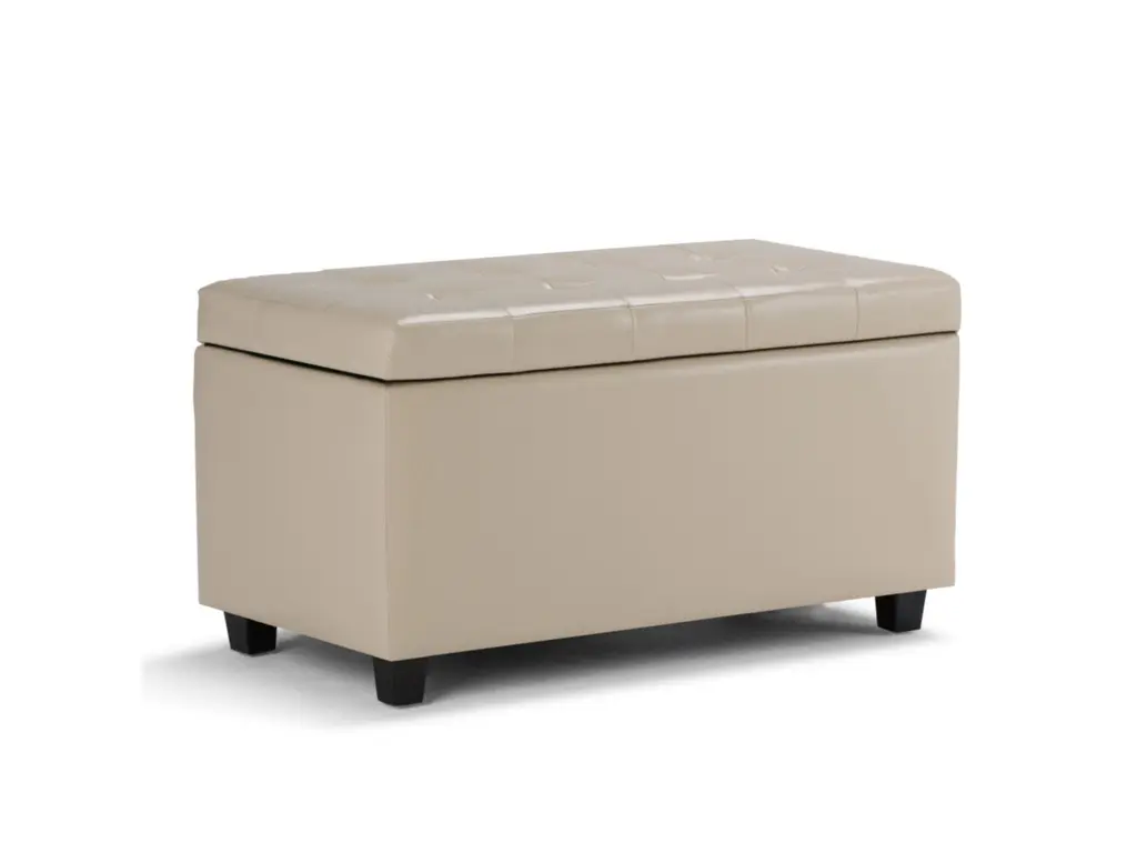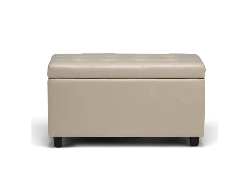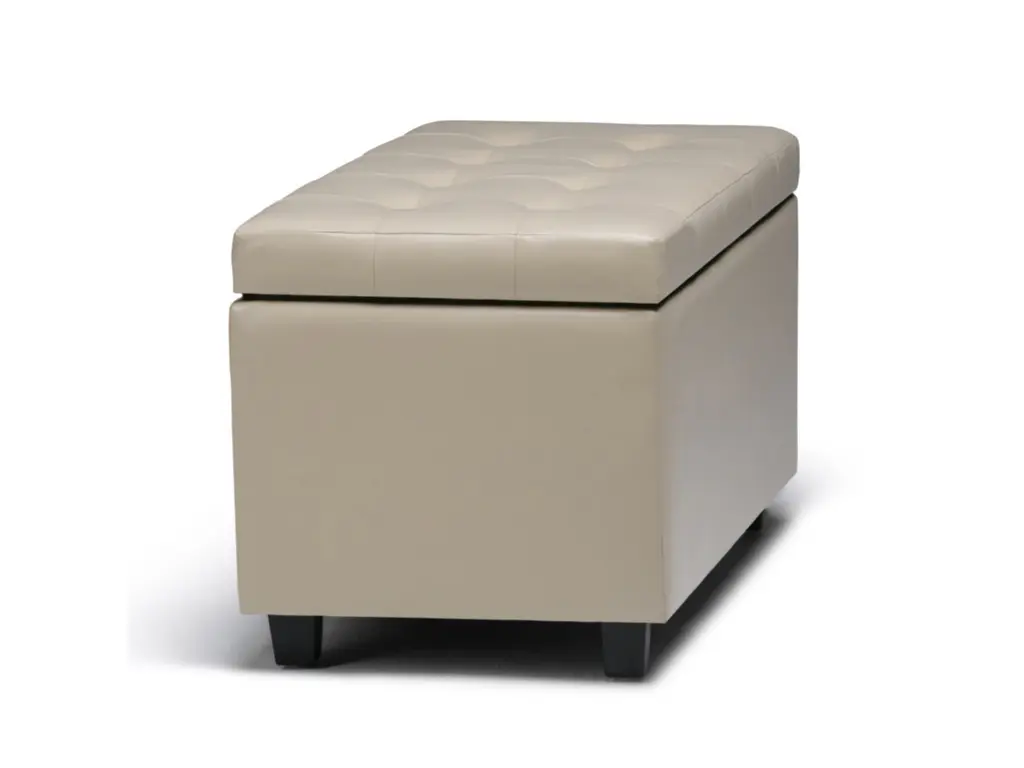 Why sacrifice function for beauty. When you are looking for a tasteful, well-made storage solution and extra seating, look no further than this storage ottoman. Made from durable faux leather, it’s extra strong and sturdy with a button tufted exterior and a large storage interior. Whether you are using it as an eating surface, a storage unit or just to put your feet up, this ottoman is a pretty and practical piece of furniture.