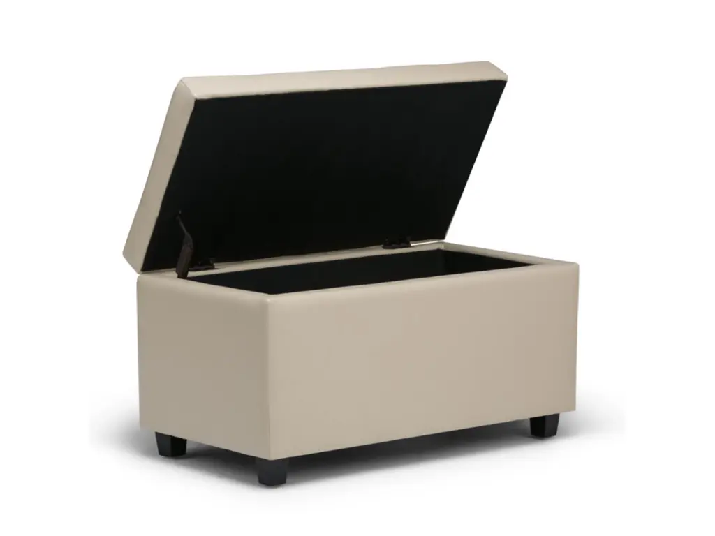 Cosmopolitan 34 Inch Wide Transitional Rectangle Storage Ottoman In Satin Cream Faux Leather