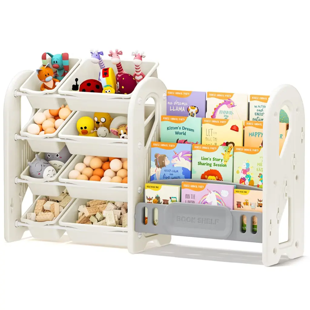 Costway Kids Toy Storage Organizer W/ 2-tier Bookshelf & Plastic Bins