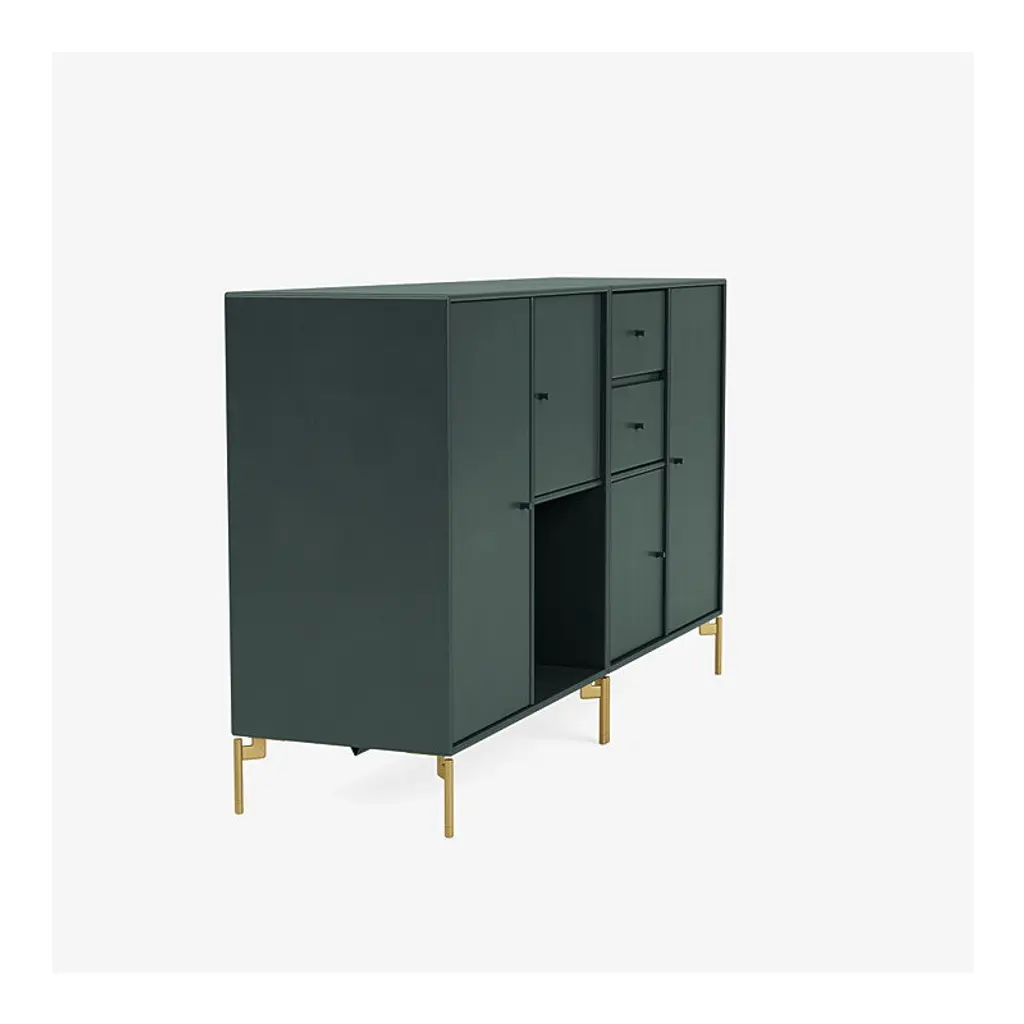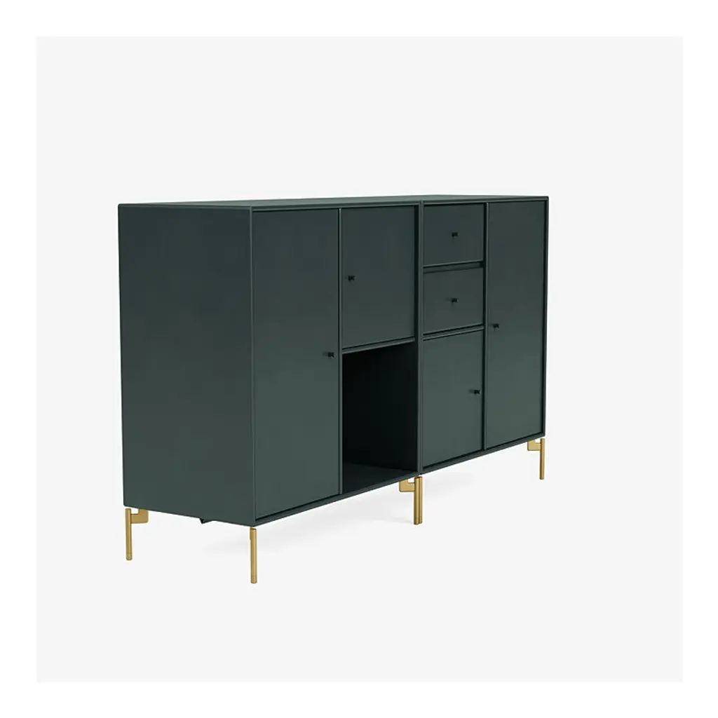 Montana Furniture’s Couple sideboard is a versatile storage unit that works equally well as a TV table, kitchen cabinet or office furniture. Standing on thin metal legs, the sideboard consists of two large cabinets, two drawers, two small cabinets and one open shelf. The Couple sideboard is a part of Montana Selection, a collection of storage furniture and interior objects characterized by a graphic, simplistic form language and subtle, Nordic colors. The Montana products were created by Peter J. Lassen, and all the items have been designed and manufactured in Denmark.
