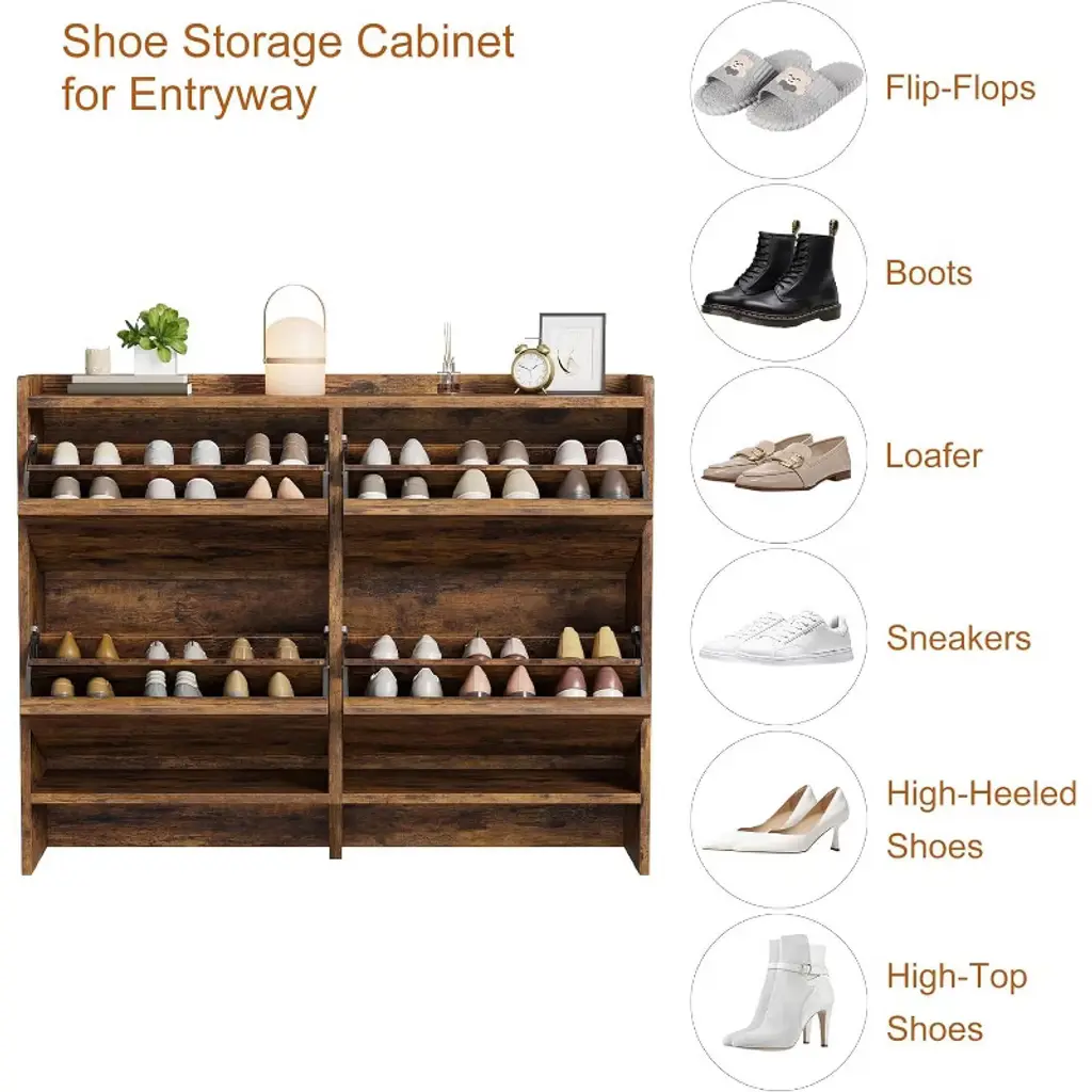 Cozony 4 Flip-door Shoe Cabinet With Wood Handles, Space-saving Entryway Organizer In Retro Finish