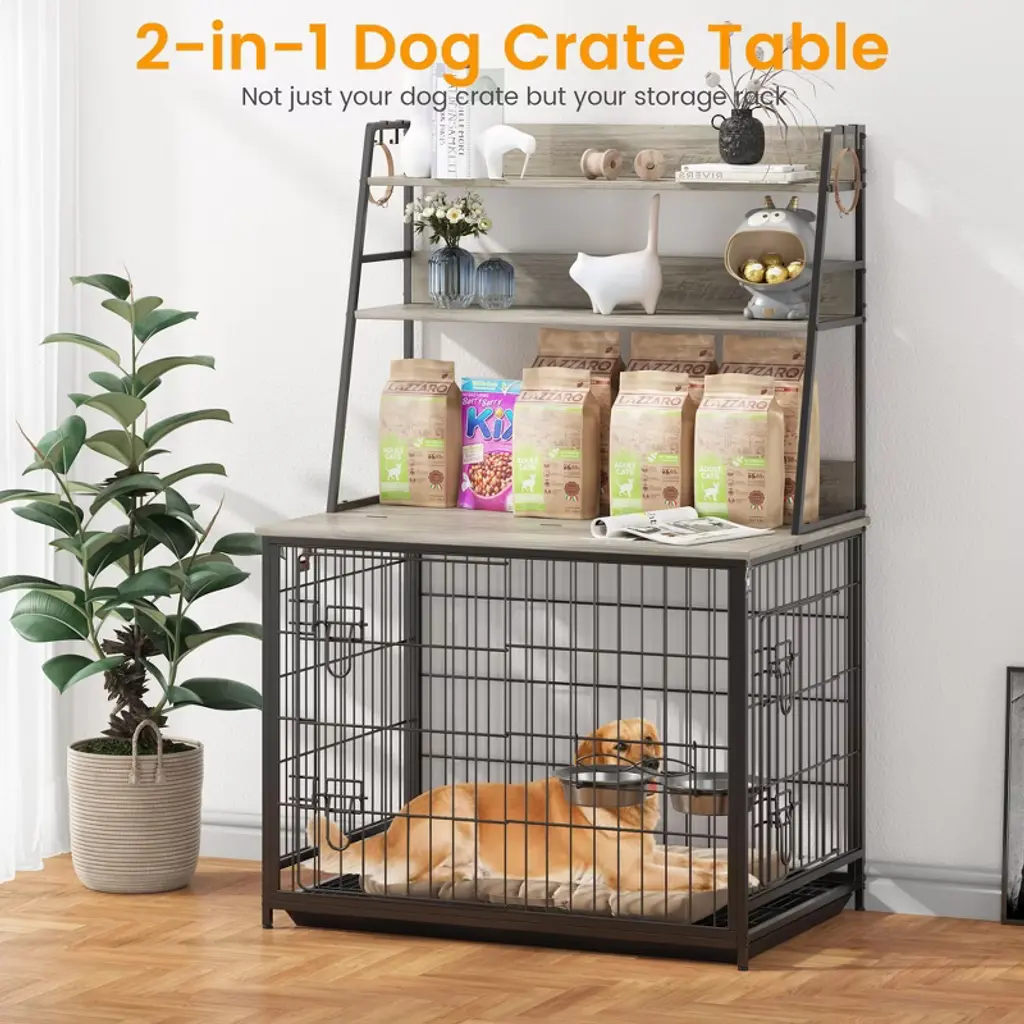 Dog Crate, 2-in-1 Large Pet Crate With Storage Shelves - 37.5" Dual Space Dog Home For Medium To Large Breeds