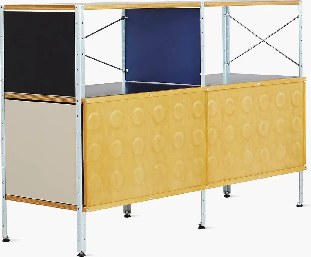 The innovative Eames Storage Unit (1950) was designed to be configured to fit a specific space or need. This original is an authentic, fully licensed product of Herman Miller, Inc. Eames is a licensed trademark of Herman Miller.