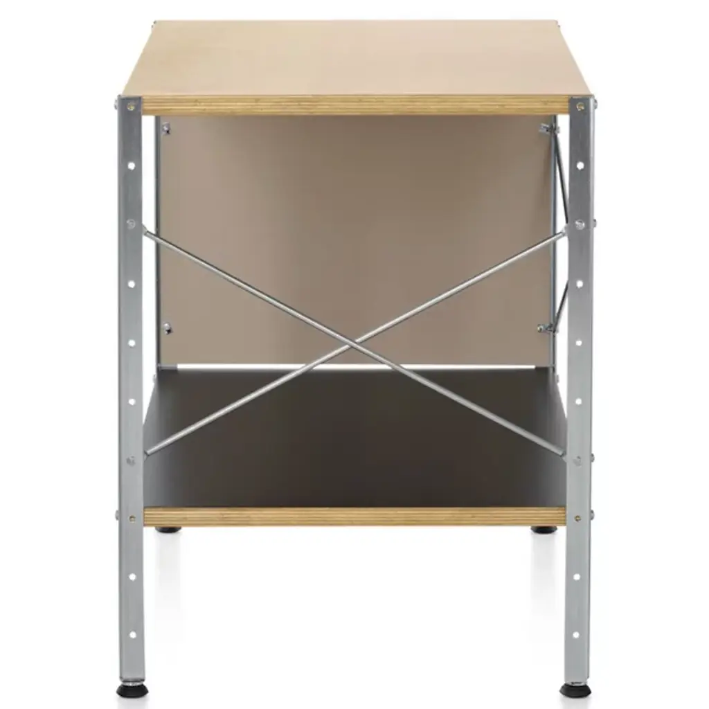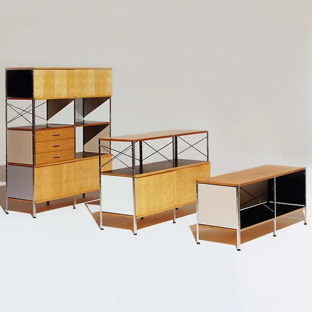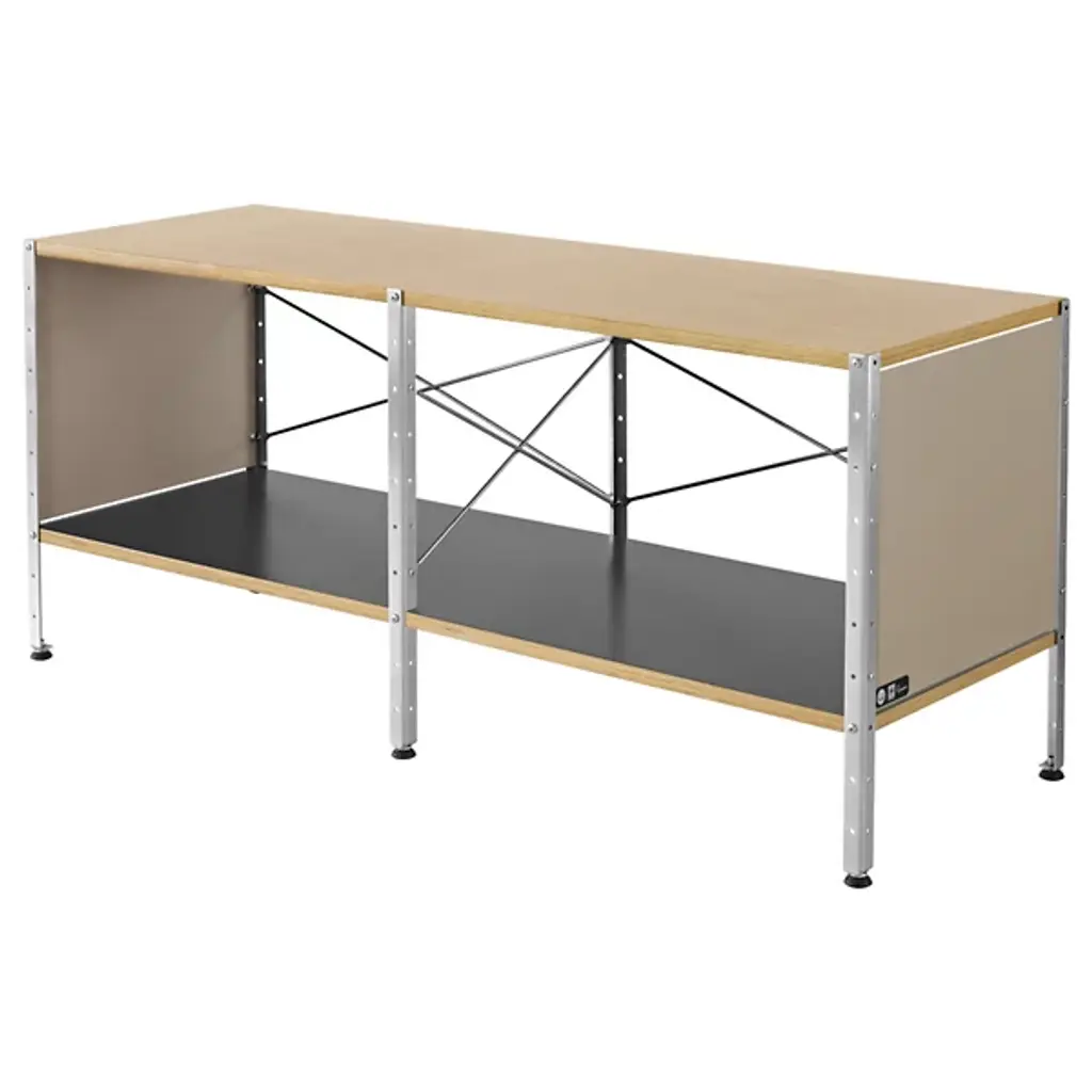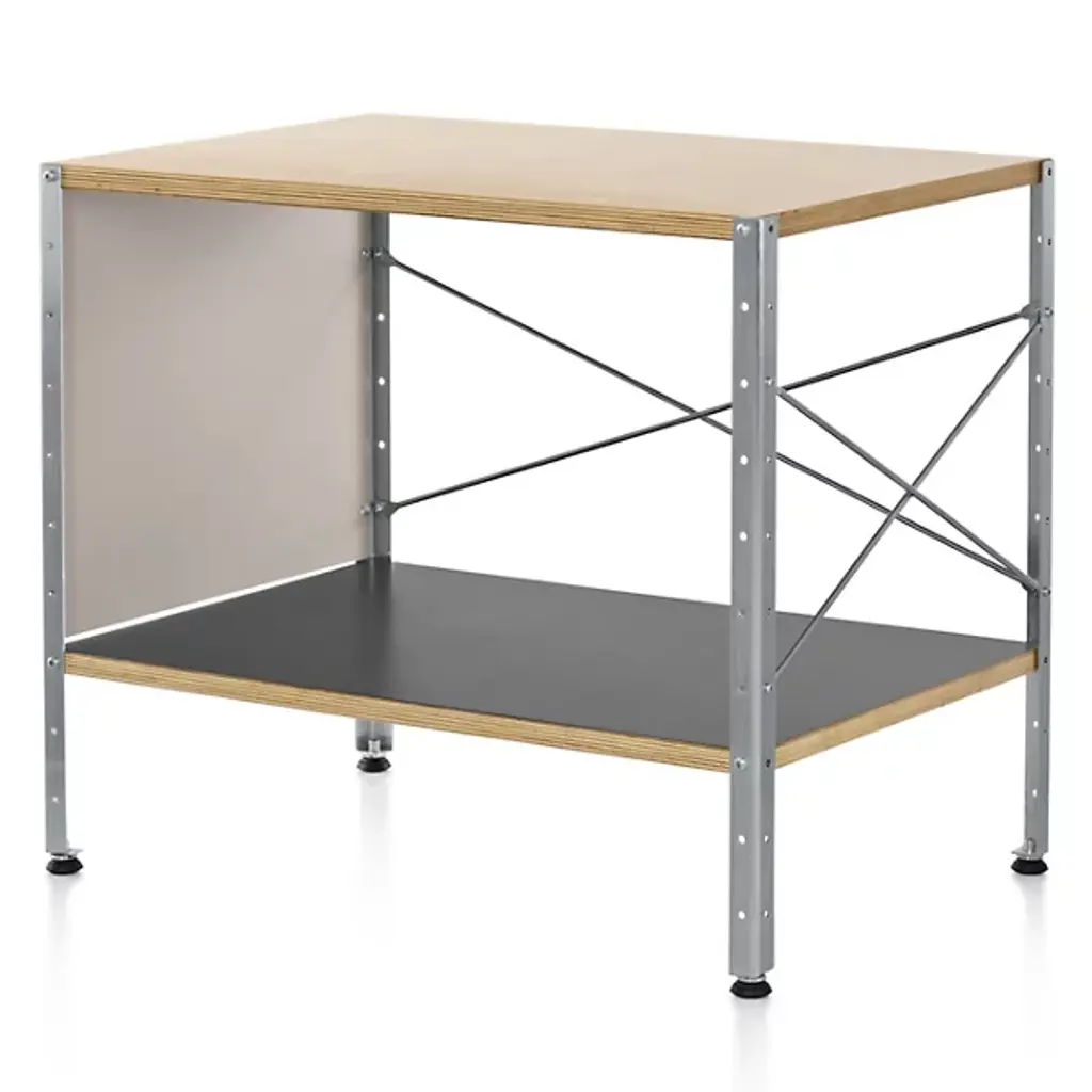 High-tech design from a mid-tech era. The Herman Miller Eames® Storage Units - 1-Unit High extended the boundaries of "design" and "modern aesthetic" long before the terms found their way into the lexicon. Blending elements of functional and fashionable, these units complement each other in multiples, and can even stand alone. Features open shelving with cross supports, and durable back and side panels. With easily accessible storage, work and display space, the Eames Storage Units remain as popular today as ever before.