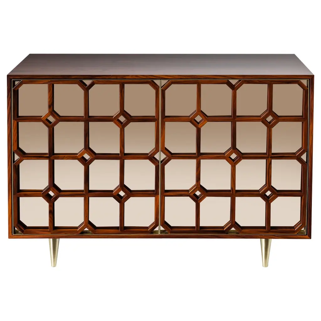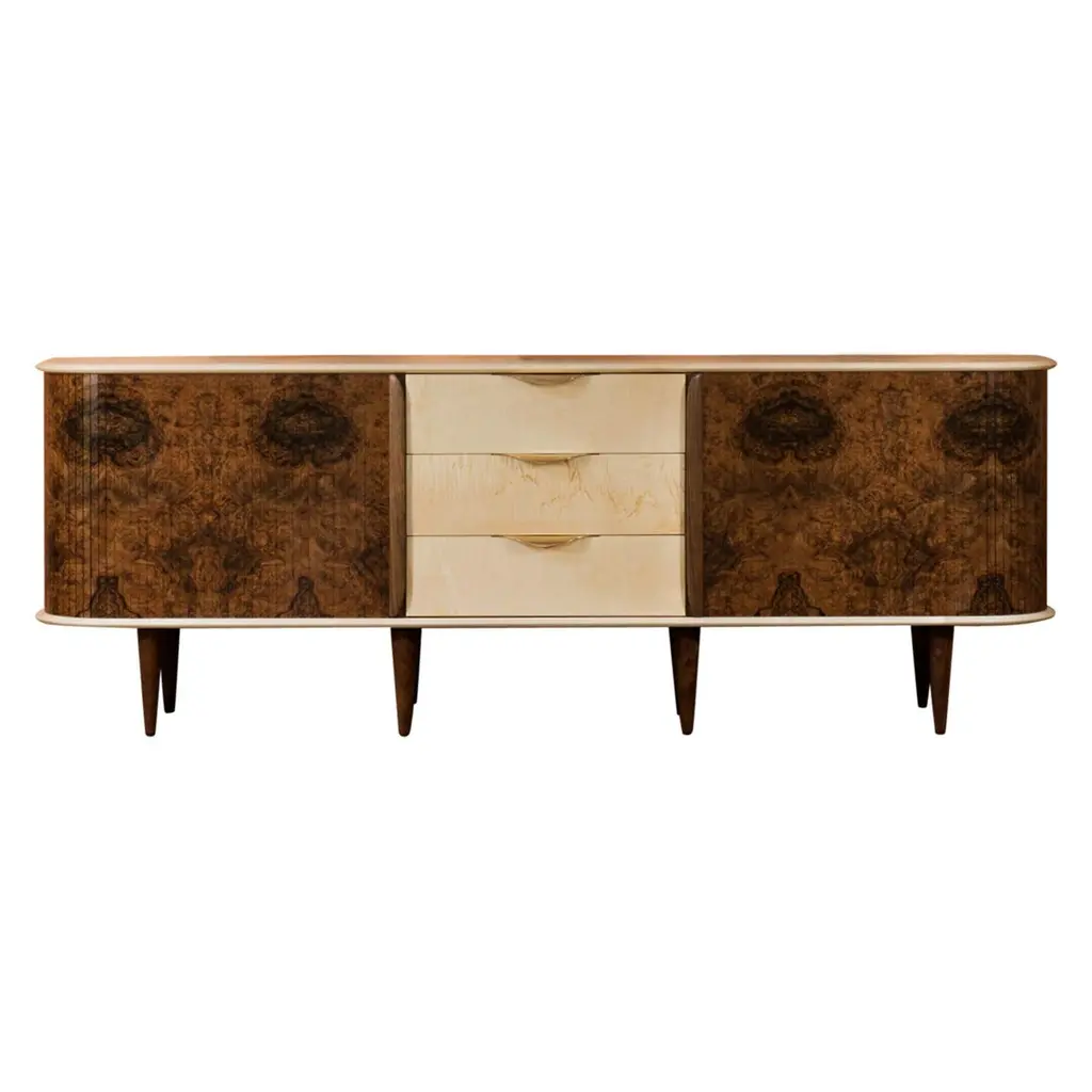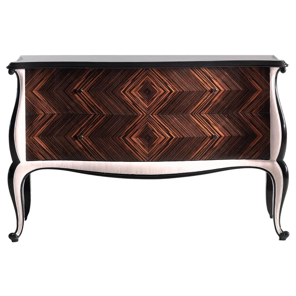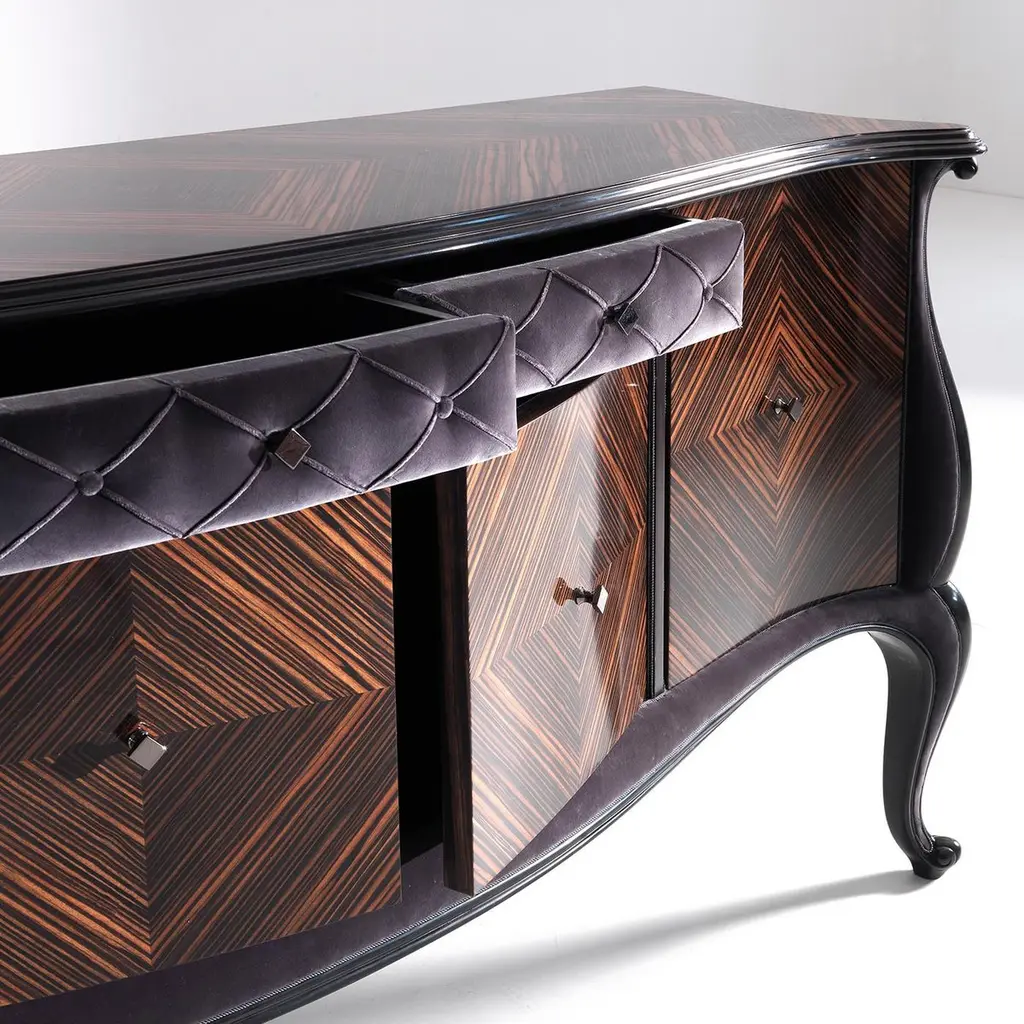 A celebration of Makassar ebony's undeniable elegance, this classic-inspired sideboard will provide invaluable storage space for different needs. Crafted of Makassar ebony enriched with fascinating velvet inserts, the piece stands out for the natural beauty of the wood's veining, particularly evident in the four doors closing the storage unit.