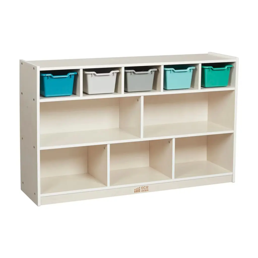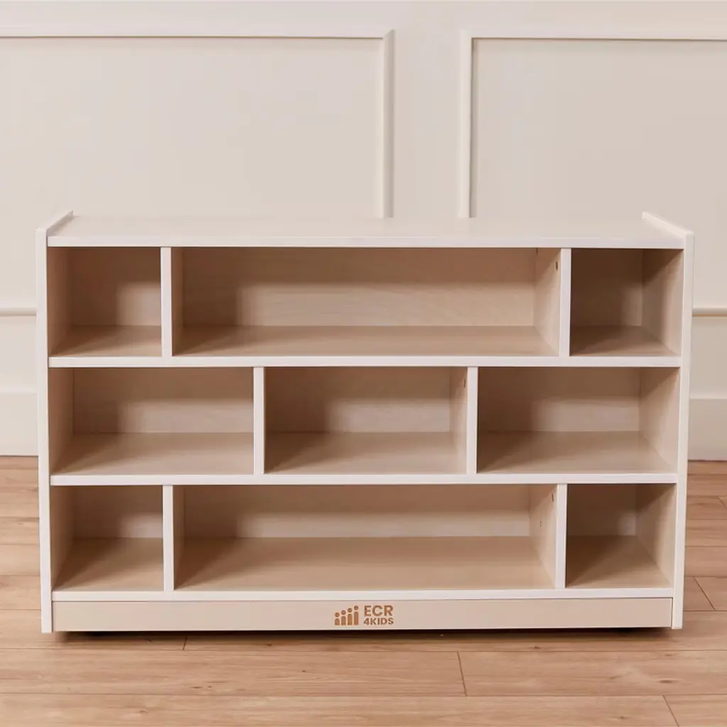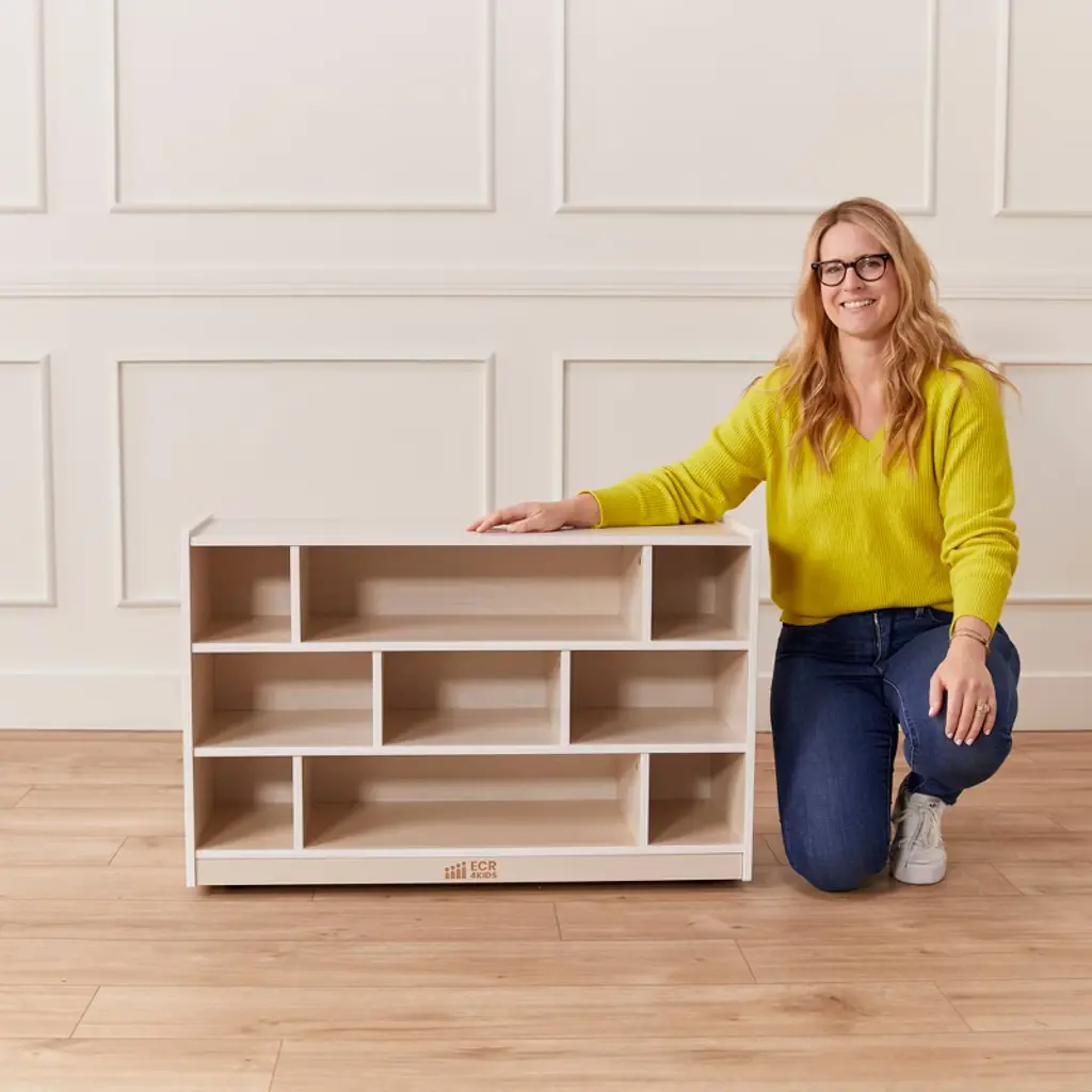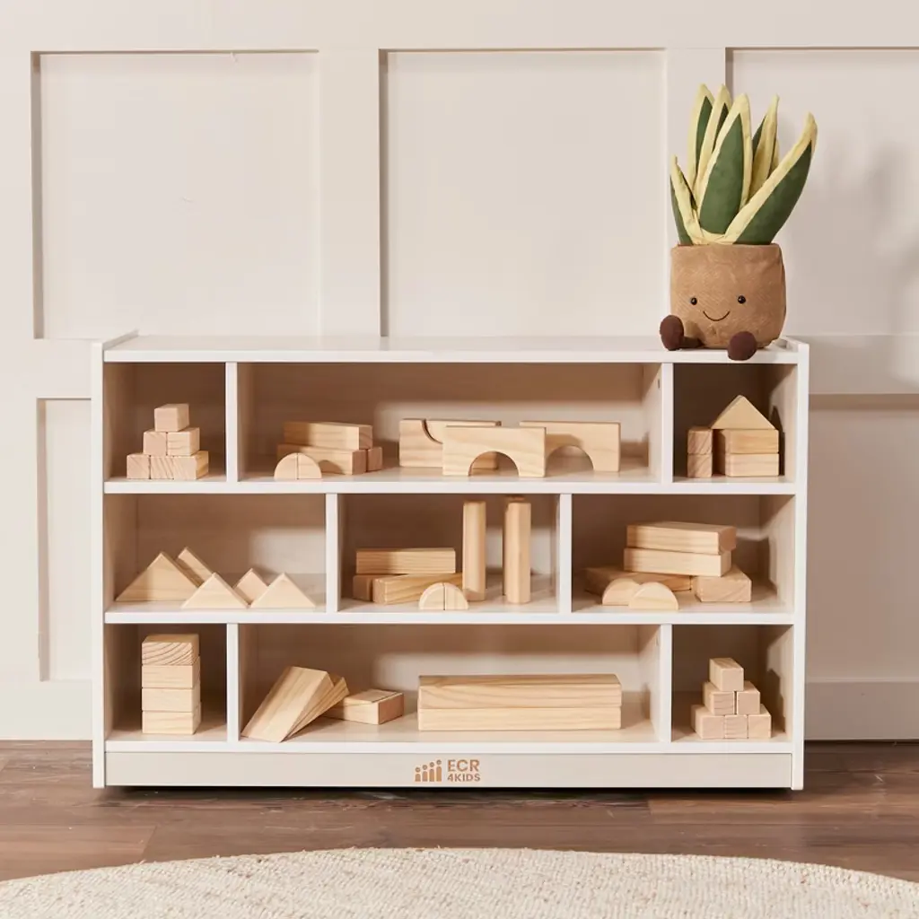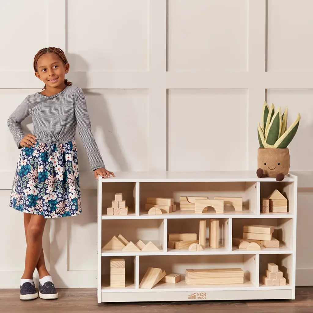 Keep your early childhood environment uncluttered with the ECR4Kids Mobile Block Storage Cart. Ideal for small spaces, kids and adults can organize and store various types of building blocks that may otherwise be forgotten. Children can practice independence and organize and store Tunnels and Arches, Unit Blocks, Hollow Blocks and more with the easy-to-reach storage unit. The deep storage cabinets are available in three different sizes to accommodate small to large block sets. The versatile storage unit features castors for mobility and quick transitions between classrooms. The kid-friendly size is perfect for toy and block rotations to foster creativity and keep playtime fresh. Constructed from sustainably harvested birch plywood with a durable finish sealing the wood surface and resisting scratching. A UV inhibitor helps furniture resist ultraviolet light and yellowing. Natural birch plywood is extremely durable and will hold up to everyday use in a preschool, playroom, or homeschool. Combine the Montessori storage with other ECR4Kids Birch Collection furniture pieces to complete the space.