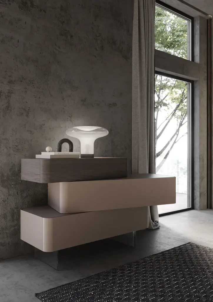 Elite is a modular chest of drawers consisting of 3 elements, each featuring a wooden drawer. It is available in a standard matte lacquered finish, in one of four oak finishes (natural, ash-stained, tobacco-stained, or charcoal-stained), or in a mixed finish (oak finish with a matte lacquered top). The third module is equipped with two transparent glass legs.For more than fifty years, Voltan has been producing furniture of the highest quality, with innovative design and projected toward modernity, but always looking toward tradition and decades of experience. Matching the night storage units, which with bas-reliefs, decorations or special shapes have become a must in Voltan production.Thus is born a collection of very strong visual impact, an aspect of a modernity that does not start only from the future but also from memory and passion, and is based on respect and love for craftsmanship and “well made” that are universal values,foundations from the company’s philosophy.