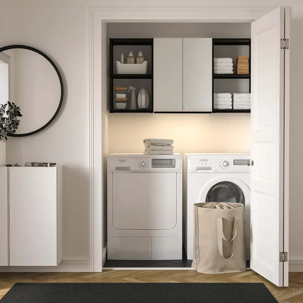 ENHET Storage combination - anthracite/white 60x12 3/4x30 ". With white doors and drawer fronts you create a clean, bright and fresh expression that you can match with accents in all colors of the rainbow. Easy to enjoy and always in style. Knobs or handles and lighting products sold separately.