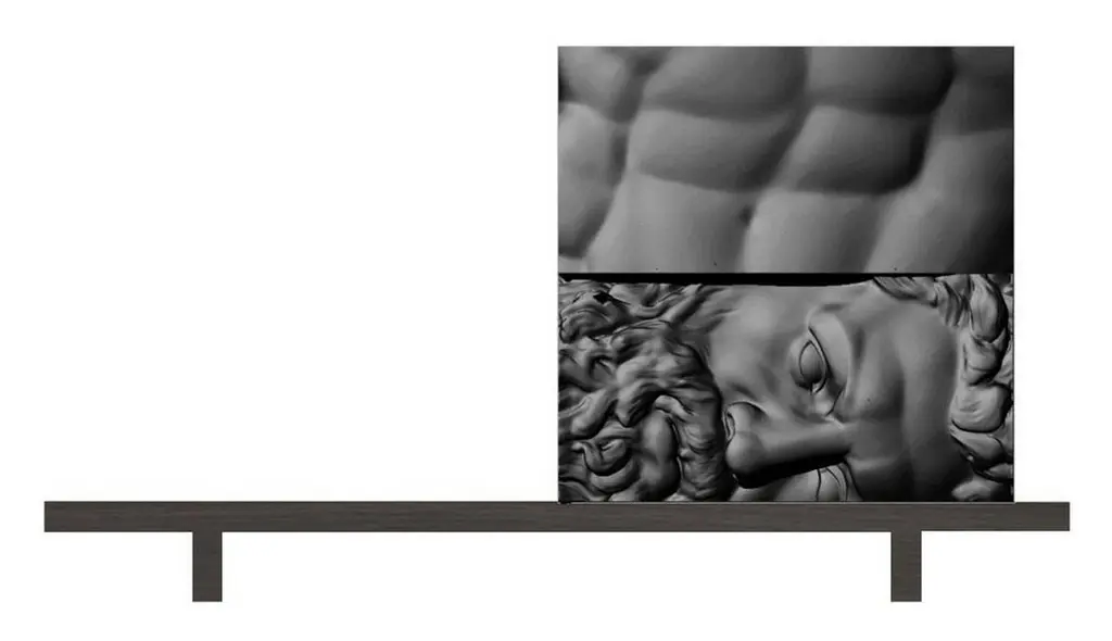 "Ercole e Afrodite Composition 4" is a modular combinable box system on a base made of poplar chipboard, reinforced by an inserted tubular steel, with bleached oak or grey painted oak finish. Structure of containers is in wooden strips, matt lacquering in black or white. Front made of high density polyurethane, matt lacquering in white or black. Indoor use only.DIMENSIONS: Base: W. 80.7" - Module with pull-out drawers, internal tray and soft closing: D. 23.6", W. 35.4", H. 43.7"A platinum version of the modular combinable box system is also available, featuring a base in grey painted oak, structure of containers in wooden strips, matt lacquering in black with metallic finishing in platinum color, made by a cold metallization process, handmade finishing and matt lacquered inner parts.Indoor use only.DRIADE presents the first project designed by DRIADELAB, the company’s research centre and creative core. "Ercole e Afrodite" are storage units featuring anthropomorphic characteristics with a powerful visual impact. They can be matt white or glossy black.Thanks to this unexpected combination of decorative art and historic language, Driadelab has designed a low relief with classic sculpted shapes that becomes a precious furnishing item in an eclectic and sophisticated setting. Containers rest on a wooden platform, available in two sizes, and are placed vertically and horizontally; each of them is embellished with a low relief, showing fragments from human body, paying homage to clear-cut lines of classical statues.