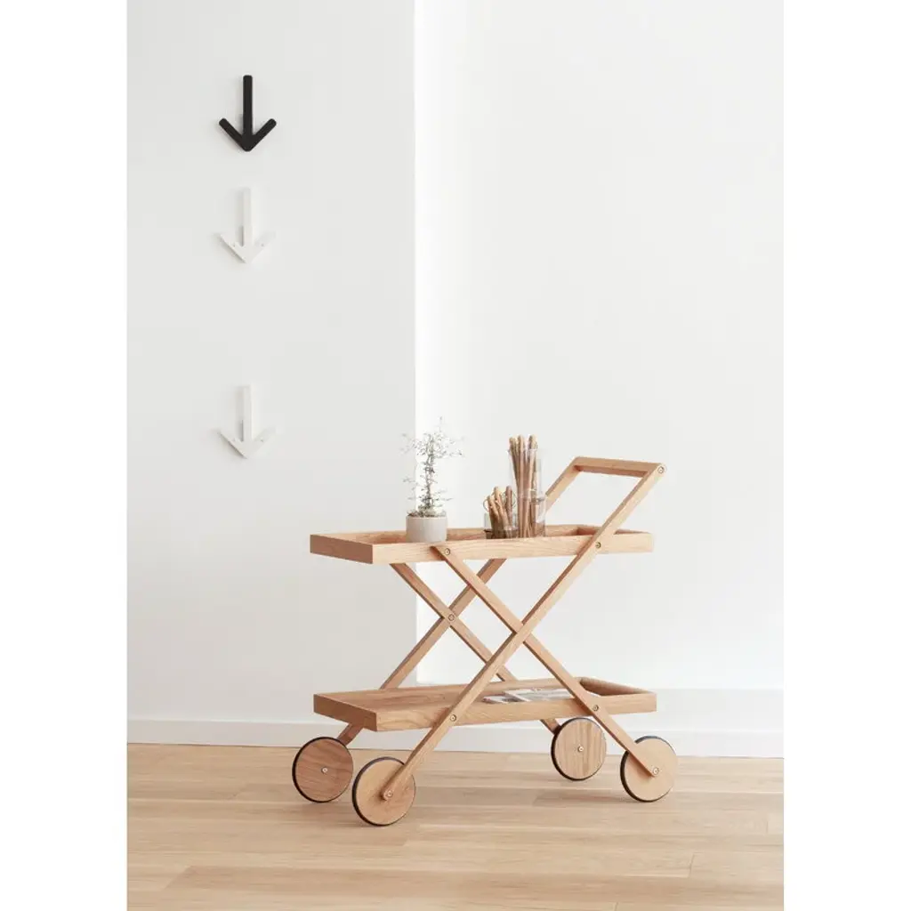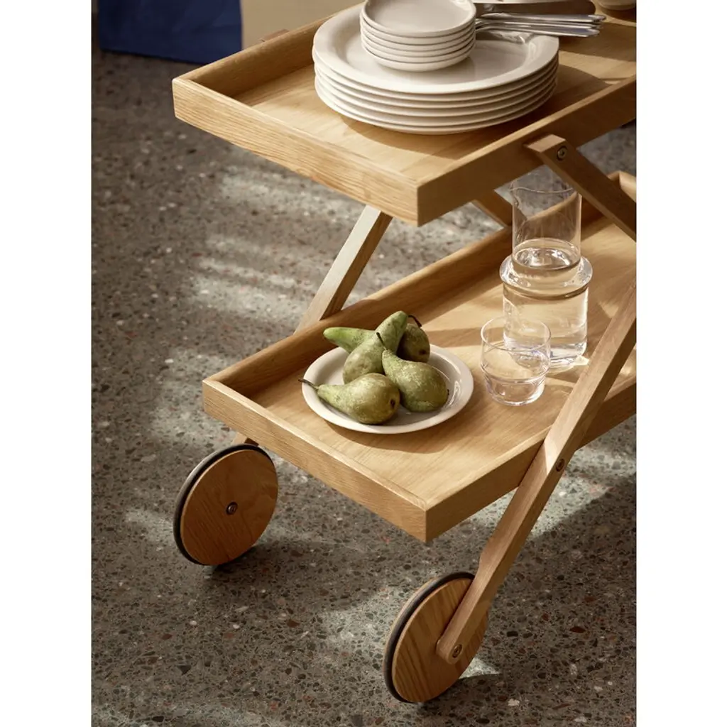 The Exit trolley by Design House Stockholm is truly a multifunctional piece of furniture whose clean-lined design makes it a great addition to any space, whether used as a storage unit in a private residence or a dish trolley in a café or restaurant. Made of solid oak, the trolley is equipped with rubber-rimmed wheels that make it possible to move the trolley silently and without scratching the floor. Designer Gunilla Allard has described the design process as follows: ”It’s a challenge for me to work in wood. You would think you would have to allow for slightly thicker dimensions, but the Exit trolley is made as thinly as possible. The natural-looking wood conveys a softer touch for a cozier feel that is equally suited to private and public settings.”