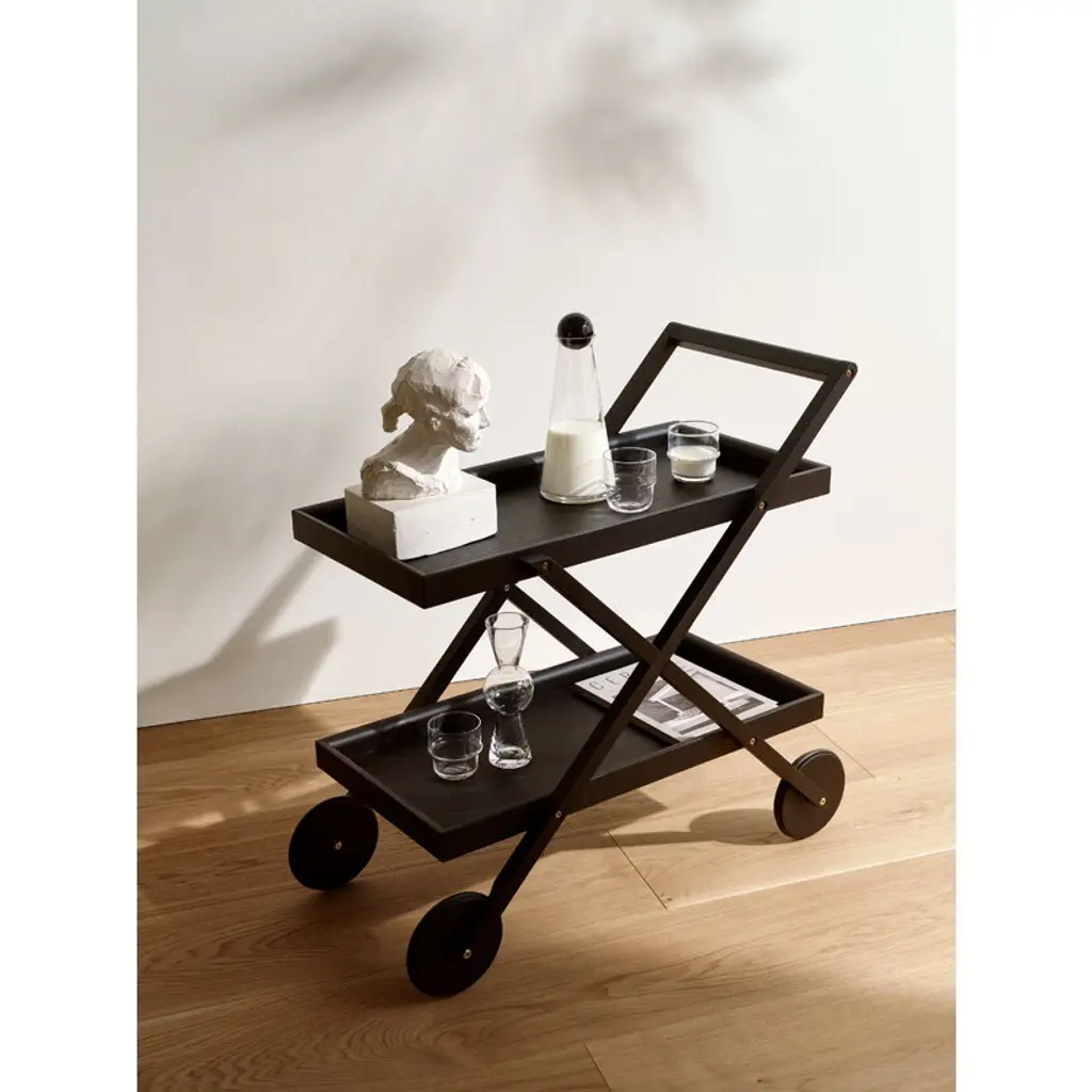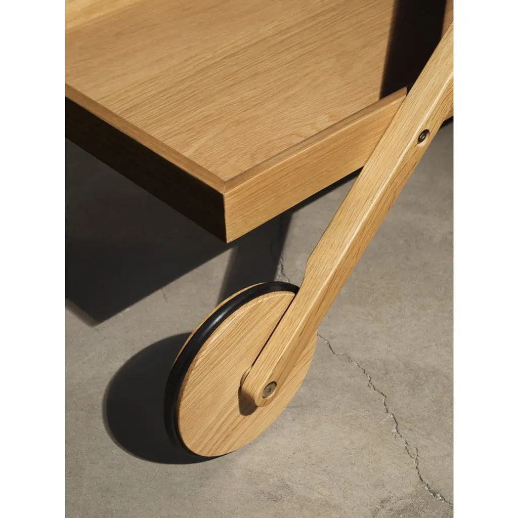 The Exit trolley by Design House Stockholm is truly a multifunctional piece of furniture whose clean-lined design makes it a great addition to any space, whether used as a storage unit in a private residence or a dish trolley in a café or restaurant. Made of white stained ash, the trolley is equipped with rubber-rimmed wheels that make it possible to move the trolley silently and without scratching the floor. Designer Gunilla Allard has described the design process as follows: ”It’s a challenge for me to work in wood. You would think you would have to allow for slightly thicker dimensions, but the Exit trolley is made as thinly as possible. The natural-looking wood conveys a softer touch for a cozier feel that is equally suited to private and public settings.”