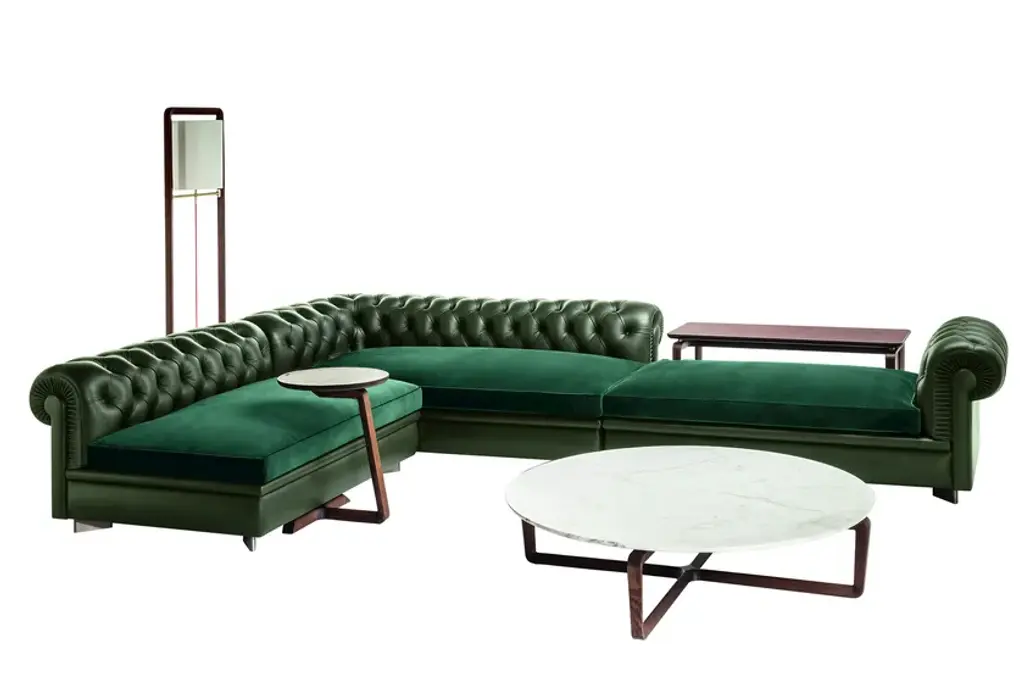 The linear and clean elegance of Fidelio is perfectly expressed in the new floor lamp and in the new side tables that enrich the collection. Satellites designed by Roberto Lazzeroni so we can live in symbiosis with sofas and armchairs. Accessories that create even more complete and versatile spaces of wellbeing around and together with Poltrona Frau seats. The lamp's vertical design contrasts with the horizontal nature of the side tables to create skylines with different balances every time.As with the rest of the collection, the restraint of the design and the painstaking precision of the lines bring out the purity of the materials. A recurring geometric feature distinguishes the construction of the wooden structures, composed of expertly processed solid ash junctions and rings.The floor lamp is a simple rectangle carved from solid wood in a moka or wenge stain, with triangular profile. The light point finds its natural location in this geometric structure with a fabric lampshade.Triangular profile and solid wood in the same finishes also appear in the base of the side tables. The top surface of the tabletop, in its rectangular and round variants, is upholstered in Cuoio Saddle Extra leather while the underneath is in Pelle Frau® leather. Edge stitching, tone on tone or contrast as desired, embellishes the surface of the saddle leather top. Alternatively, the tops can come in Emperador marble with a glossy finish or Calacatta gold marble with a glossy or semi-glossy finish.The metal details on all of the new accessories are in brushed steel with galvanic treatment and a natural brass finish.A collection of storage units for any room in the home. Low cabinet for the living room. Chest of drawers, tall boy and bedside table for the bedroom. Deliberately lean design, precious materials. Functional details become highly characteristic aesthetic elements, such as the recessed handles that provide interesting graphics on the surfaces. Intense contrast also between the dark, warm hues of Cuoio Saddle Extra leather and the wood covering the outside and the bight explosion of the very pale natural maple used inside the compartments and drawers. Formal minimalism and sophisticated finishes for an across-the-board collection, an easy match for all the Poltrona Frau furnishings yet with its own very defined personality. The low cabinet has a supporting frame in solid ash and birch plywood with moka coloured ash veneer. The system of compartments and drawers creates an alternating balance of empty and solid. The unit stands on a solid ash easel structure emphasising its visual lightness, perfect for living areas.The Fidelio bedroom units are more compact, to provide all the storage space needed in this room. The supporting frame is in solid Canaletto walnut and birch plywood with Canaletto walnut veneer. All the pieces in the collection have the outside of the drawers and side panels covered in Cuoio Saddle or Cuoio Saddle Extra leather. On request, the back panel can also be covered in leather, otherwise it comes in moka ash or Canaletto walnut veneer. An even richer impression of solidity is given by the versions with semi-polished Calacatta gold marble top for the bedroom units, plus a polished finished for the low cabinet. Alternatively, top in solid wood with moka coloured ash veneer for the low cabinet or in Canaletto walnut for the bedroom units.