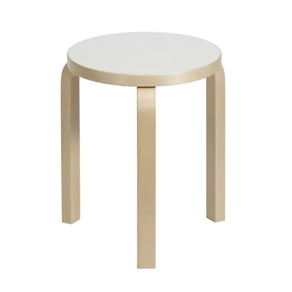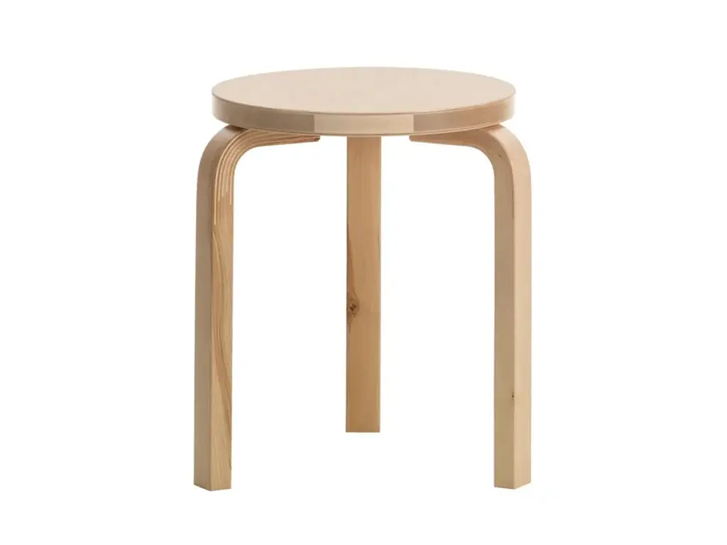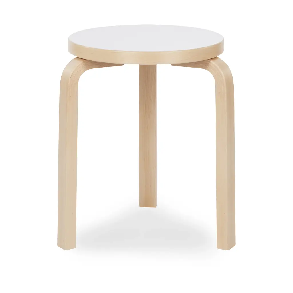 Alvar Aalto’s four-legged Stool E60 is the most elemental of furniture pieces, equally suitable as a seat, table, storage unit, or display surface. Projecting a sense of relaxed familiarity, Stool E60 is equally suited to the home, public buildings, and educational facilities. The legs are mounted directly to the underside of the round seat without the need for complicated connecting elements. Thanks to its geometry, the stool can be stacked to save space in a spiralling tower sculpture.Reintroduced in 2024 by Formafantasma in an unprecedented wild birch variant.The Forest Collection is part of an ongoing collaboration between Artek and Formafantasma, an Italian design studio that investigates how environmental, political and social forces influence design today. With the launch of the 'wild birch' variants of the Stool 60 and E60 originally launched in 2023 - they will be updated to become even wilder. While the Stools currently only show natural marks on the legs, all Stool 60 and E60 in 'wild birch' will in future also feature insect marks and small knots on their upper surfaces, as well as a matt finish. The update will apply to all 'wild birch' variants of the Stool 60 and E60 produced from 25 April 2024 onwards.
